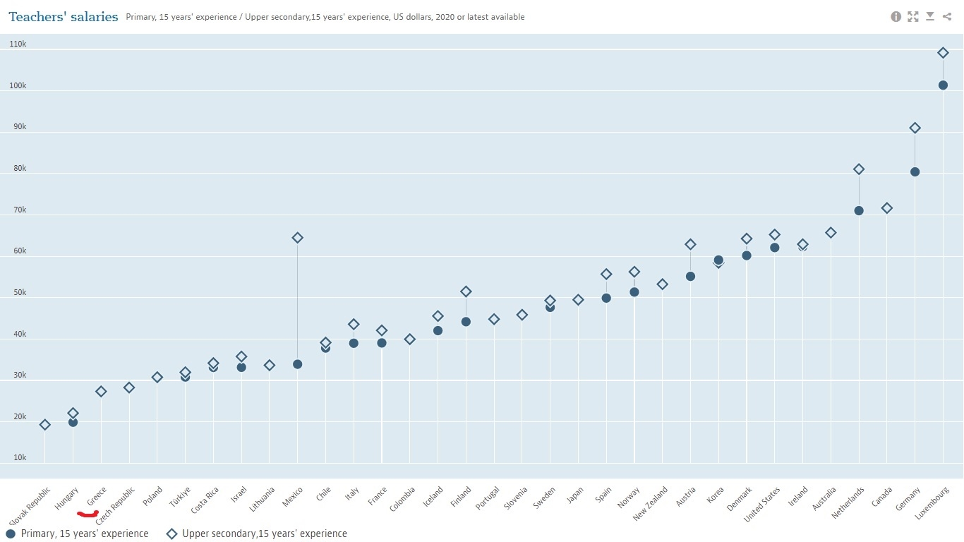 Αρκετοί επισημαίνουν και τους χαμηλούς μισθούς των Ελλήνων εκπαιδευτικών σε σχέση με τους Ευρωπαίους συναδέλφους τους. «Δεν είναι μόνο ο εκπαιδευτικός υπεύθυνος για την κατάσταση στο σχολείο, υπάρχουν κι άλλοι παράγοντες. Στην Ελλάδα η πολιτεία θεωρεί σχεδόν ένοχους τους εκπαιδευτικούς, περνώντας την άποψη μέσω των ΜΜΕ ότι επιβάλλοντας στρατιωτική πειθαρχία όλα θα πάνε καλά,» σχολιάζει ο κ. Μπουντουλούλης. «Η ανηψιά μου κάνει μάθημα σε κοντέινερ, πώς να αξιολογηθεί ο καθηγητής της αν χρησιμοποιεί ψηφιακά μέσα οταν δεν έχει καν τάξη; Οι αναπληρωτές για να συμπληρώσουν το ωράριο μετακινούνται σε 4-5 σχολεία, αρκετοί φορτώνονται με 15 τμήματα 25 μαθητών και μερικοί προσλαμβάνονται το Δεκέμβριο, πώς να αξιολογηθούν;» τονίζει από την πλευρά του ο Γιάννης Γ., καθηγητής σε ιδιωτικό σχολείο.