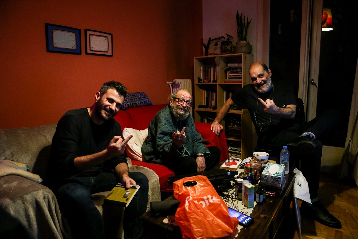 “‘Φτώχεια και γηρατειά δυσδιαχείριστες ασθένειες’, έλεγε ο Διογένης. Και έτσι είναι κιόλας”, μας λέει. “Με ρωτάνε καμιά φορά τα πιο νέα παιδιά ‘τι να περιμένουμε;’. Λέω κοιτάξτε: από τα 60 μέχρι τα 70 αρχίζεις και υποψιάζεσαι τι περίπου πάει να σου συμβεί. Από τα 70 και ύστερα αυτά που υποψιαζόσουν, αρχίζουν και σου συμβαίνουν. Ε, και από τα 80 και πέρα πας μέρα με την ημέρα, δεν μπορείς να υπολογίζεις. Είναι όπως στην απεξάρτηση”.
