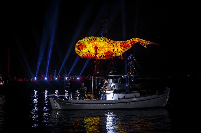 Τελικά πιο πολύ και από το θαλάσσιο πλάσμα που αναδύθηκε από τα νερά του λιμανιού μάς εντυπωσίασαν τα δρώμενα παντός είδους που συναντήσαμε κατά μήκος της οδού Κανελλοπούλου. Στο παράκτιο μέτωπο μέχρι να φτάσουμε στο ΙΡΙΣ, σε ταράτσες, αυλές, ταβέρνες, μπαλκόνια, παράθυρα και δώματα είδαμε πειραματικά project, οπερατικά ιντερλούδια, σύγχρονες χορογραφίες, ηχητικές εγκαταστάσεις και ρεσιτάλ ποντιακής λύρας.