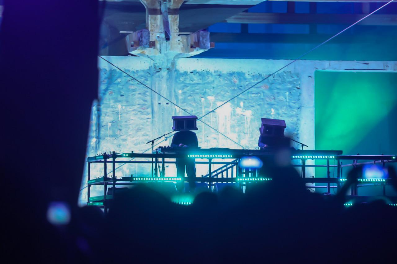 Ο συμβολισμός του τσιμεντόλιθου, που είναι βασικό δομικό υλικό, και κυρίως στην Ελευσίνα της εργατιάς που βρισκόμαστε, είναι απλός και εύκολα κατανοητός. Αυθόρμητα μερικά άτομα ψιθύρισαν “Daft Punk”, αλλά κανένας δεν ασχολήθηκε περαιτέρω, γιατί η ατμόσφαιρα ηλεκτρίστηκε στο δευτερόλεπτο με τα ηχοτοπία των Στέρεο Νόβα, που μας έστειλαν μία βόλτα στο παρελθόν. Το δίδυμο έπαιξε με μεγάλη όρεξη, αν και σίγουρα η δυσκολία με το “κουτί” (ειδική κατασκευή Δήμητρας Καίσαρη) στο κεφάλι θα ήταν πρωτόγνωρη.