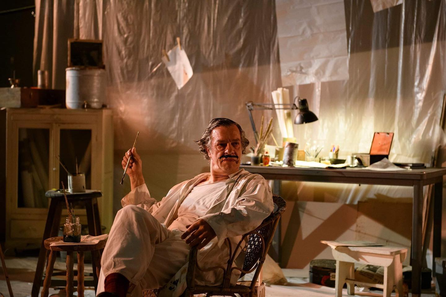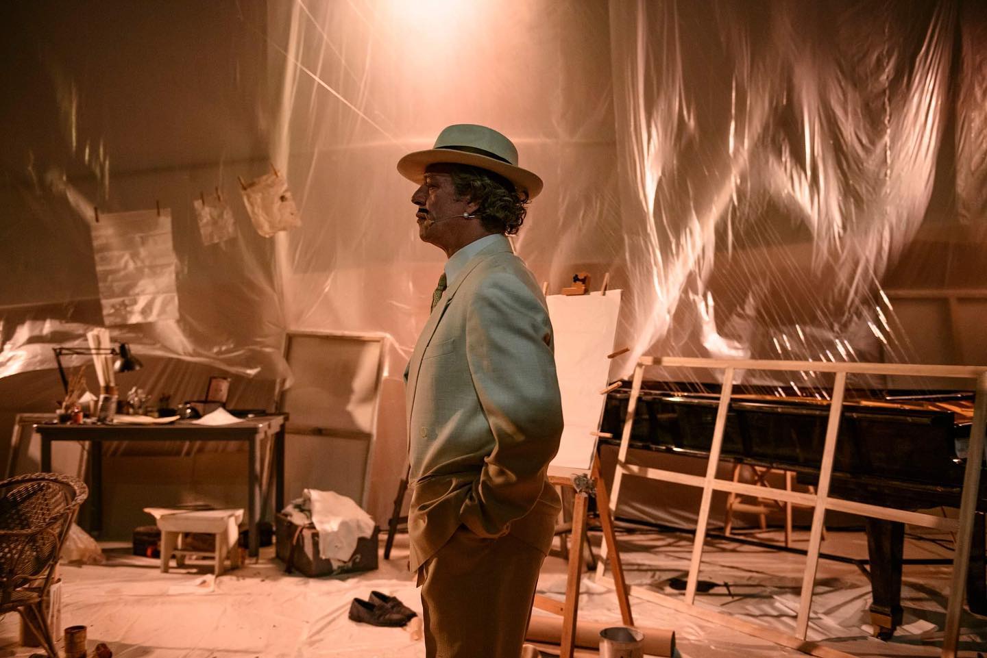 Ο Γιάννης Τσορτέκης, στον ρόλο του Παρθένη, περιφέρεται μέσα στο εργαστήριο του, παίζει με τα χρώματά του, απαντά στις κατηγορίες των πολεμίων του, σκίζει τους καμβάδες του, πίνει ακόμη και το νερό που μόλις πριν λίγο έχει ξεπλύνει τα πινέλα του. Δίνει μία ερμηνεία με πολλές διακυμάνσεις, αρχικά πυρακτωμένη και εξωστρεφή και μετά πιο ήρεμη και εσωστρεφή και μας βάζει στην ταραγμένη του ψυχοσύνθεση. Ουσιαστικά ενσαρκώνει το μεγαλείο, την πνευματικότητα και τον δημιουργικό οίστρο του καλλιτέχνη που αναζητά τη σχέση του με το παρελθόν, καθώς και τον ρόλο του στην κοινωνία και στον σχεδιασμό του μέλλοντος.