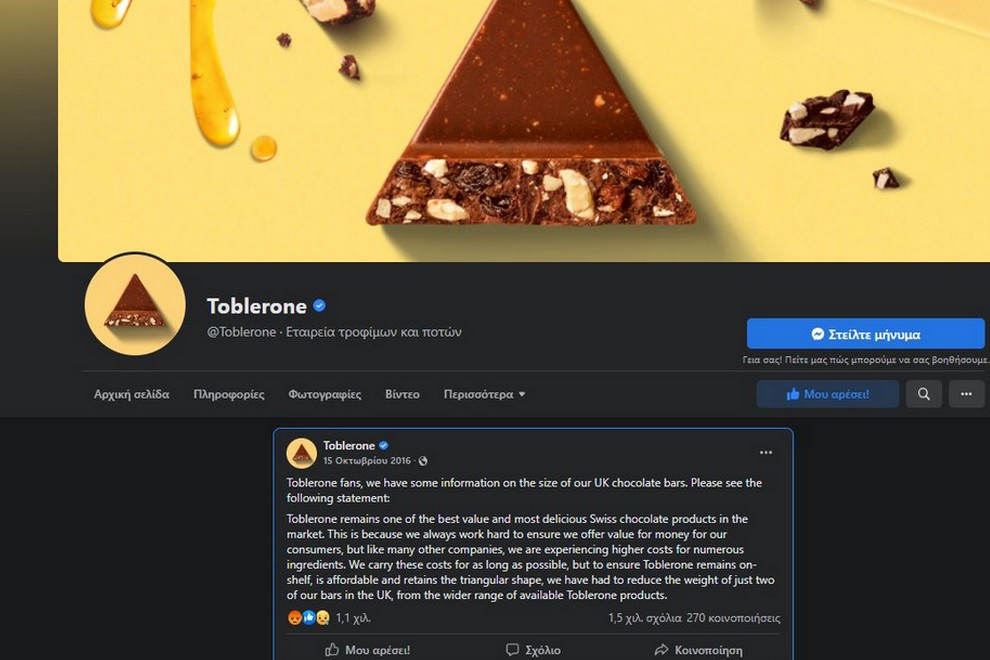 Όσο για το παράδειγμα της Toblerone, πάντως, που προαναφέραμε, όπου η μείωση της ποσότητας έγινε αντιληπτή, ο κ. Μάμαλης εξηγεί: “Εκεί, ο καταναλωτής κατάλαβε ότι μειώθηκαν τα κομμάτια. Πέρασε δηλαδή το κατώφλι, όπως λέμε στο μάρκετινγκ, και αντέδρασε”.