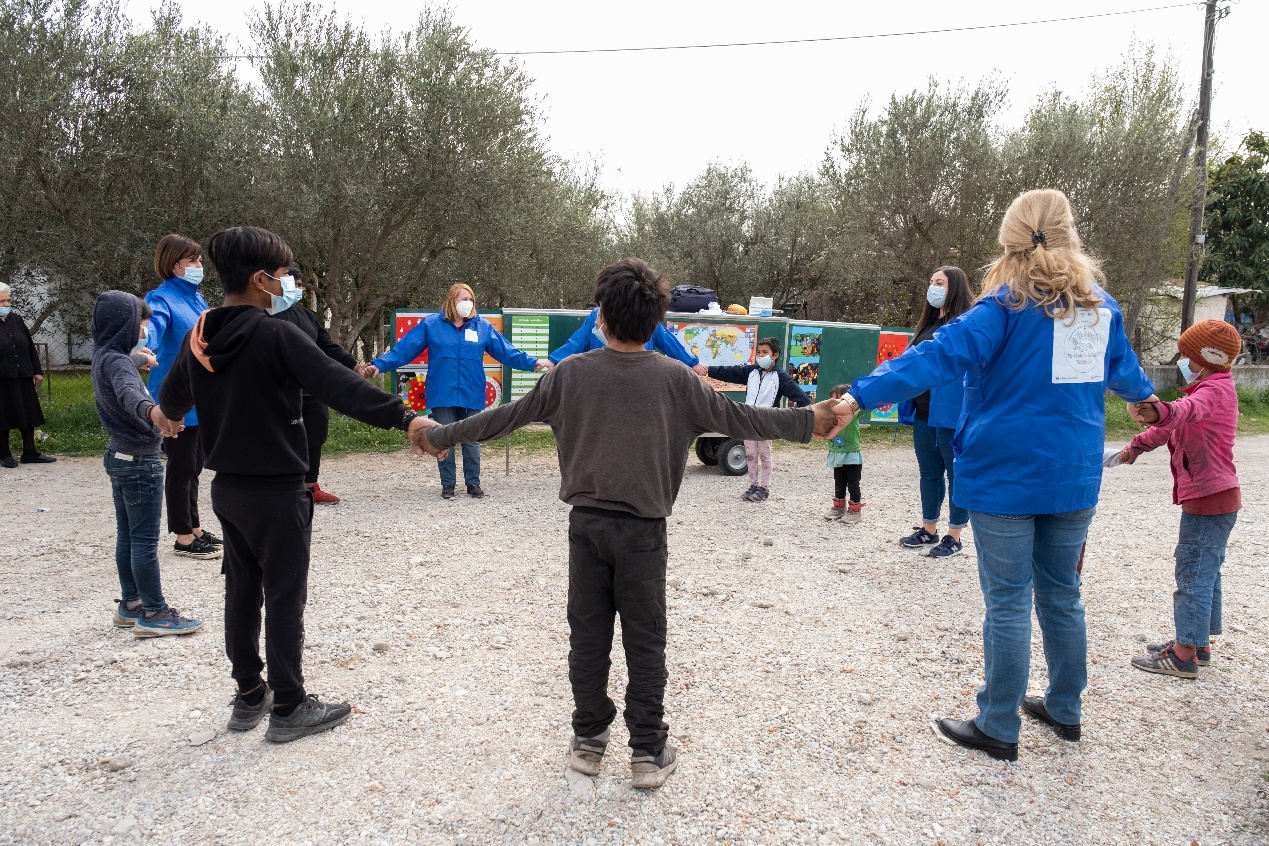 Τα ομαδικά παιχνίδια είναι μέρος της προσέγγισης των παιδιών Ρομά από τα μέλη της ομάδας street work του Mobile School Ένωση Κυριών Δράμας