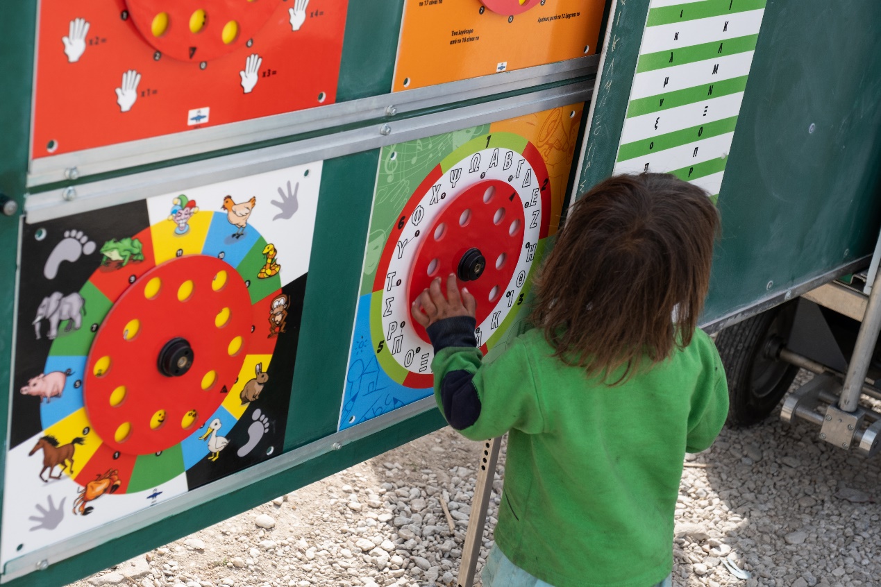 Περισσότερα από 350 πάνελ μπορούν να τοποθετηθούν πάνω στην τροχήλατη κατασκευή καλύπτοντας ευρεία εκπαιδευτική θεματολογία Ένωση Κυριών Δράμας
