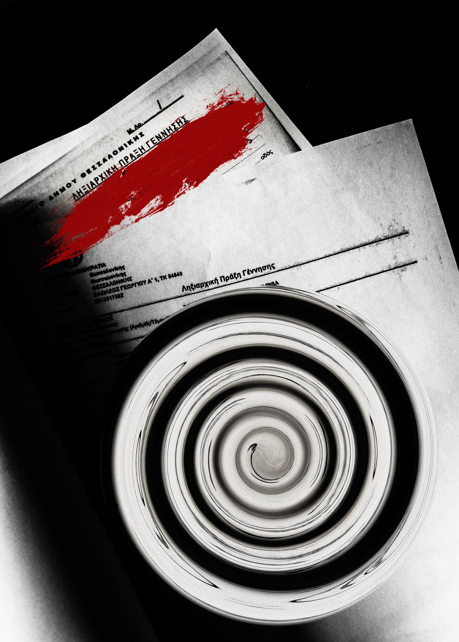 Για τον Άλκη τα δύο αυτά έγγραφα σηματοδοτούν την ελευθερία του και η κορνίζα που φαίνεται να κρατά στη φωτογραφία του ανάγει το σώμα σε ένα έργο τέχνης.