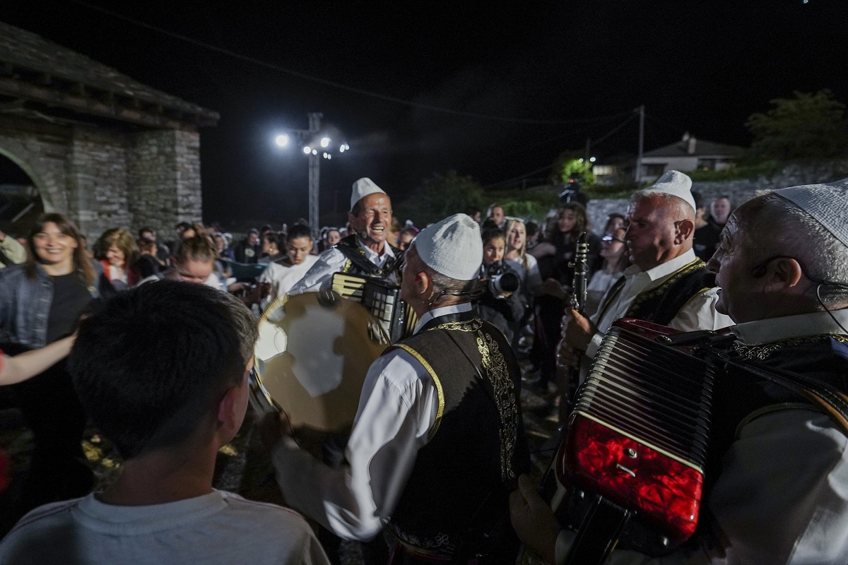 Σειρά είχαν ο Κώστας Καραπάνος και ο Όρελ Κίρτζο από την Κορυτσά, μέλη του τετραμελούς συγκροτήματος ηπειρωτικής ορχηστρικής μουσικής, που έχει την εξής ιδιαιτερότητα -για μας που δεν ξέρουμε και πολλά τουλάχιστον: στη θέση του κλαρίνου, έχουν τοποθετήσει το βιολί, θυμίζοντας πώς αυτό ήταν το βασικό όργανο της ηπειρώτικης μουσικής μέχρι το νεοφερμένο ευρωπαϊκό πνευστό να κατακτήσει σταδιακά τις κοινότητες των Ηπειρωτών.