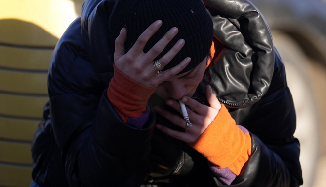 Μια γυναίκα καπνίζει τσιγάρο καθώς προσπαθεί να ζεσταθεί δίπλα στη φωτιά, στο Γκαζιαντέπ της νοτιοανατολικής Τουρκίας AP Photo/Kamran Jebreili