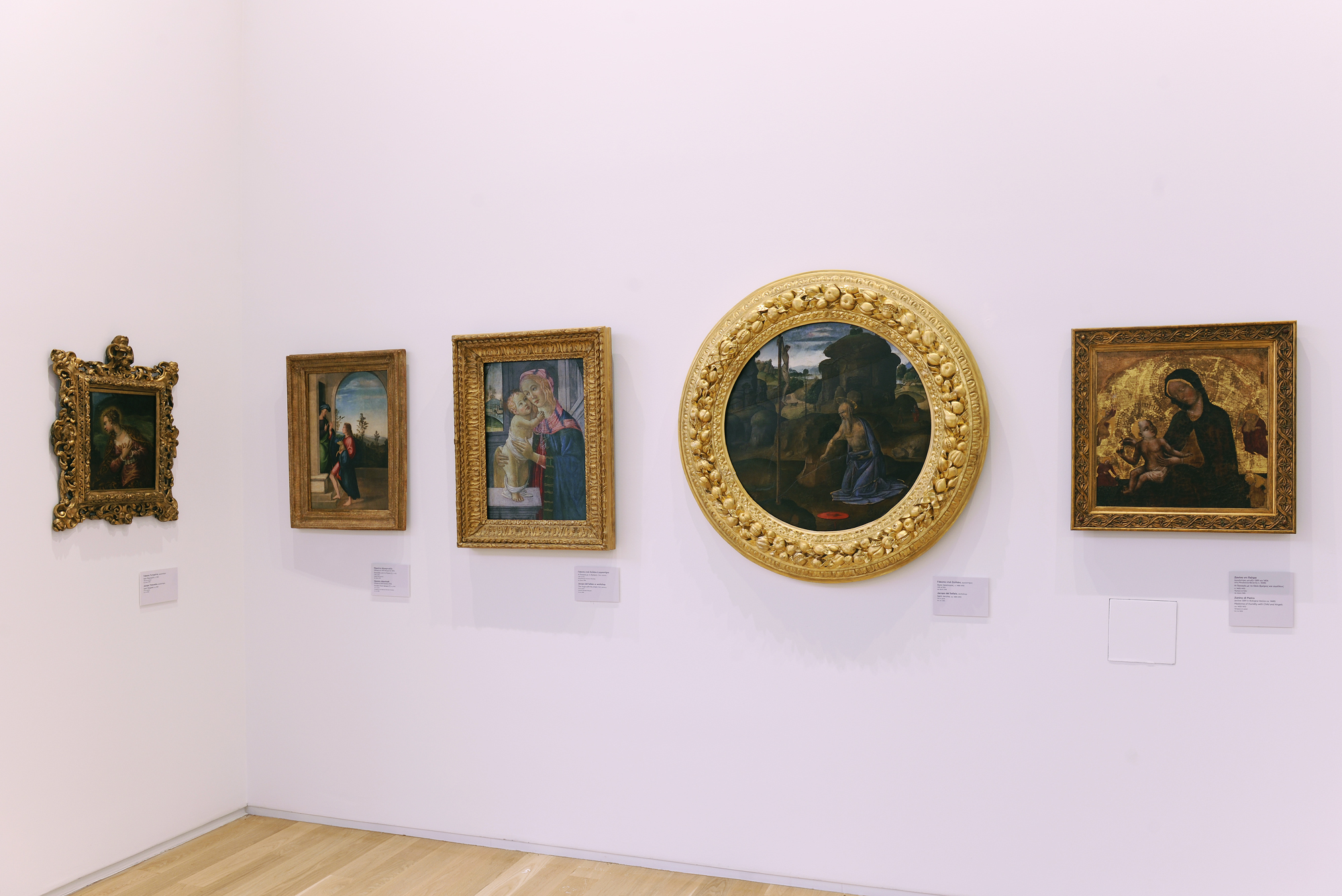 Στον χώρο αυτό περιηγηθήκαμε μετά τη συνέντευξη Τύπου και θαυμάσαμε μια μικρή, αποσπασματική παρουσίαση 47 έργων αρχικά, από τον 14ο έως το δεύτερο μισό του 20ού αιώνα, σε επιμέλεια της Έφης Αγαθονίκου. Το παλαιότερο έργο είναι η Αγία Τριάδα (π. 1389), που αποδίδεται στον Μάρκο Βενετσιάνο, και το νεότερο το Σεληνιακό τοπίο (π. 1966) του Λούτσιο Φοντάνα, μεταξύ των οποίων θα εκτίθενται και πέντε έργα από τη Δωρεά των Γάλλων καλλιτεχνών.