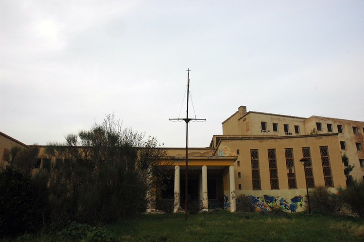 Στην αρχή της οδού Θεμιστοκλέους βρίσκεται η είσοδος του νοσοκομείου που εδώ και 35 χρόνια είναι έρμαιο στη φθορά και τις λεηλασίες. Λειτούργησε από το 1948 έως το 1975, οπότε και έκλεισε για την εκτέλεση επιδιορθώσεων, αλλά το 1981 οι εργασίες σταμάτησαν. Από τότε αποτελεί χώρο εξερεύνησης, τόπο παιχνιδιού για τα παιδιά της γειτονιάς, καταφύγιο ναρκομανών, επιφάνεια έκφρασης για καλλιτέχνες του γκράφιτι, πεδίο αναζήτησης για κυνηγούς φαντασμάτων κ.ά. Ανήκει στο Ναυτικό Απομαχικό Ταμείο το οποίο δεσμεύεται από το καταστατικό του να το λειτουργήσει μόνο ως νοσοκομείο. Έτσι, το κτίριο και η συνολική έκταση των 120 στρεμμάτων παραμένουν αναξιοποίητα.