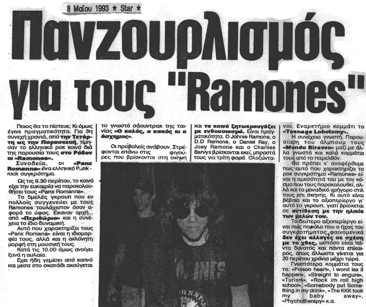 Την άλλη μέρα οι Ramones ήταν καλεσμένοι στον Rock FM. Είχαν πάει στο στούντιο και ο Τζόι είχε πάρει μαζί του τον δίσκο μας. Όταν τον ρώτησε ο Δασκαλόπουλος “ποιους θες να παίξουμε”, εκείνος του απαντά “τους Panx Romana”.
