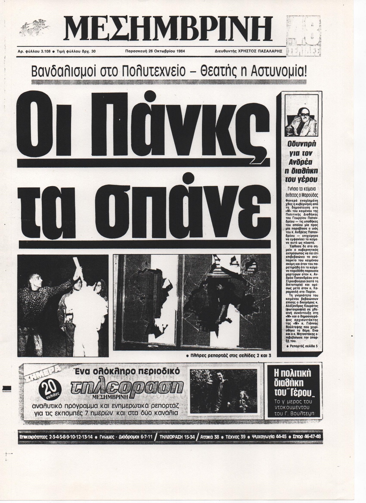 Οι εφημερίδες έκαναν πρωτοσέλιδα ότι “οι πανκς έκαψαν το Πολυτεχνείο”, “οι πανκ τα σπάνε”, ακόμα και γελοιογραφίες μας έκαναν “πανκς ή τανκς”, “έξυπνα παιδιά οι πανκ, μπήκαν στο Πολυτεχνείο χωρίς εξετάσεις” κα.