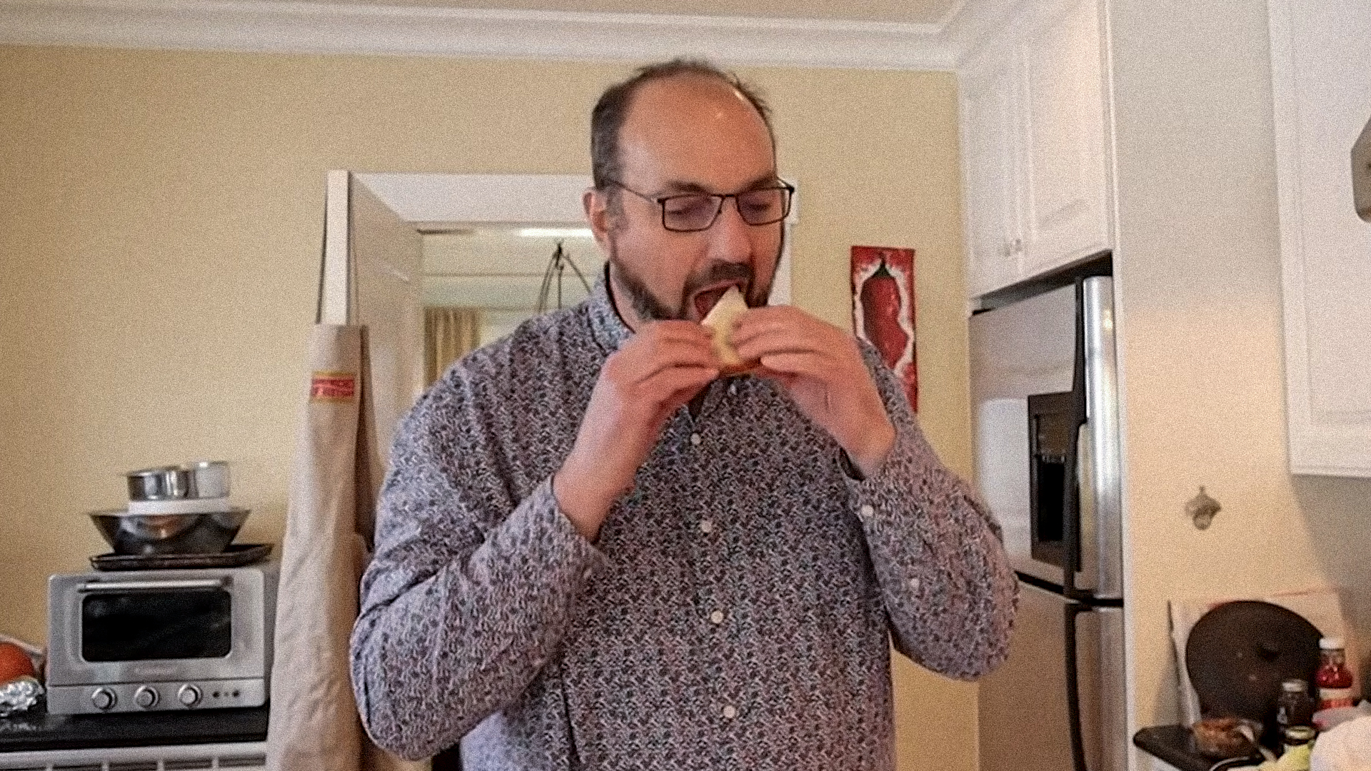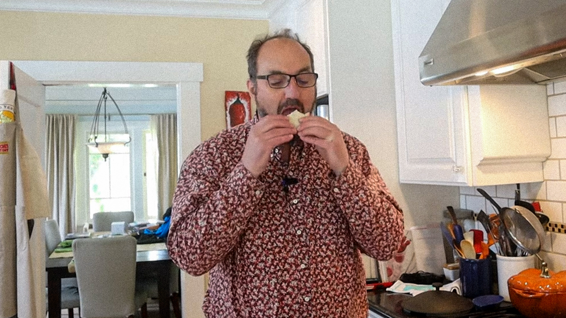 Τα αγαπημένα του; «Νομίζω, είναι τα διεθνή που έχουν αντέξει στο πέρασμα του χρόνου, όπως το κλασικό γαλλικό pan bagnat ή το Reuben που φτιάχνουμε στη βόρεια Αμερική. Προσωπικά αγαπημένο είναι ένα σάντουιτς που κάνουν σε ένα εστιατόριο στη Νέα Ορλεάνη, το “Turkey and the Wolf”: φρυγανισμένο ψωμί, ντομάτα, αλάτι και πιπέρι, ηλιόσποροι, πολύς άνηθος, πολύς βασιλικός και λίγος χυμός λεμονιού. Δεν μπορείς να φανταστείς πόσο νόστιμο είναι, είναι πολύ καλύτερο απ’ όσο θα έπρεπε (γέλια). Εκτός του καναλιού μου, αγαπημένο είναι το σάντουιτς με ροσμπίφ, μπλε τυρί και ρόκα. Απ’ όσα φτιάχνω, δεν μπορώ να τα θυμάμαι όλα, κρατάω σε ένα xcelόφυλλο τις βαθμολογίες που τους βάζω εν είδει αρχείου».
