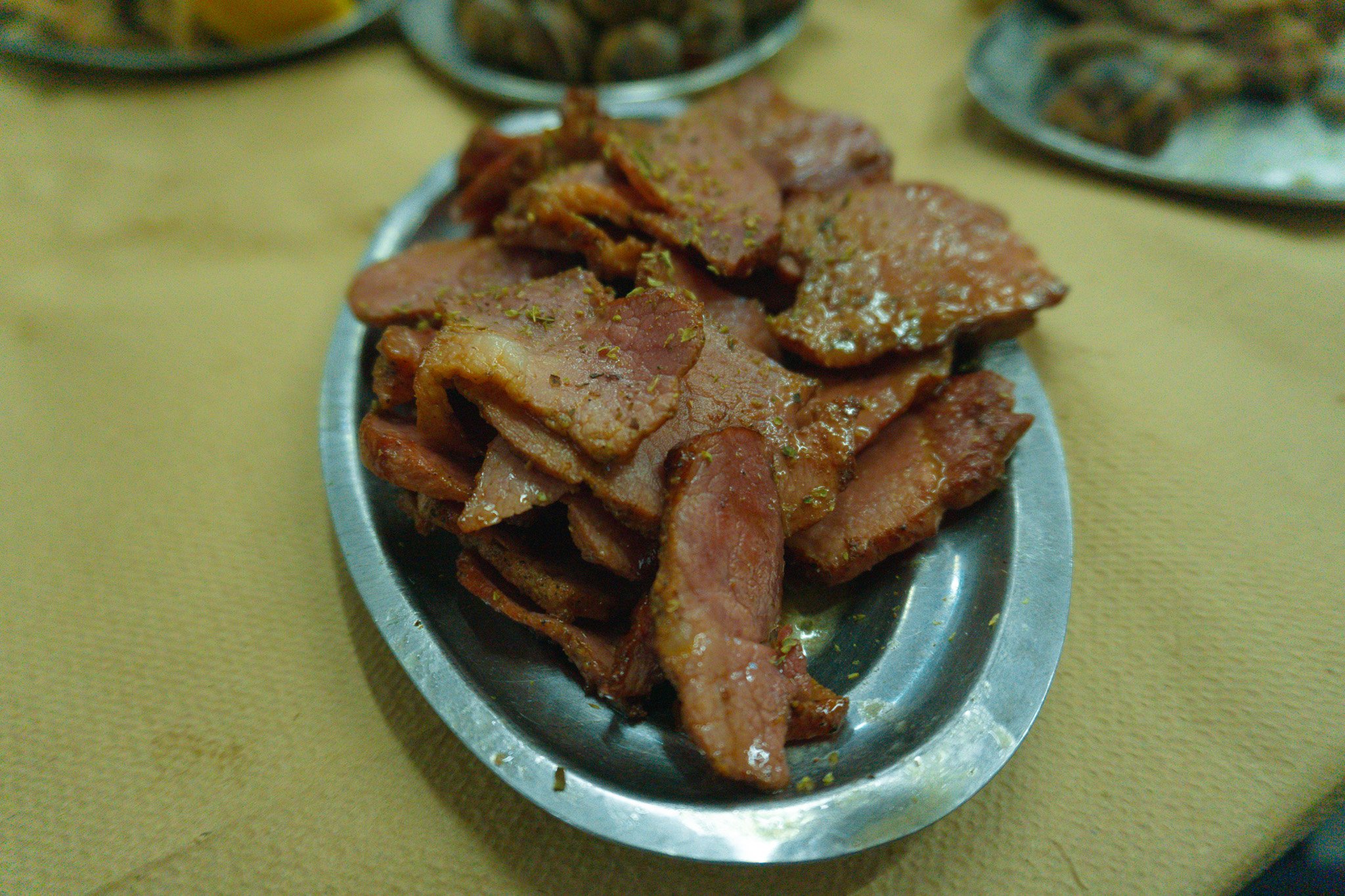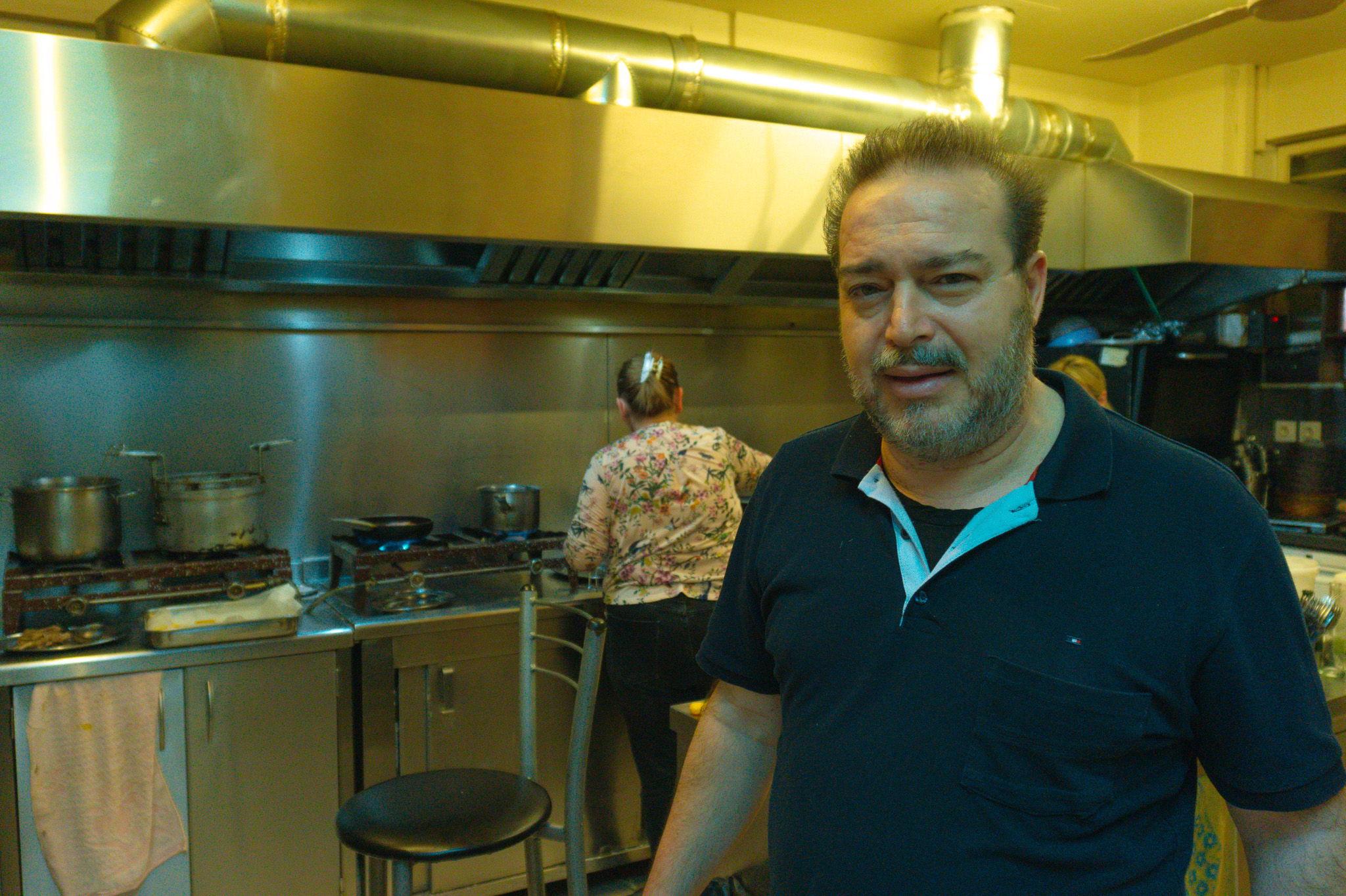 Μαζί με τη σύζυγό του Σοφία, ο Μανώλης φέρνει βόλτα όλο το μαγαζί. Πίσω από τον πάγκο που χωρίζει τη σάλα, απλώνεται η ανοιχτή κουζίνα, εκεί που τα τηγάνια παίρνουν φωτιά στα χέρια των γυναικών. Οικογενειακές συνταγές και μαγειρέματα και ο ίδιος να βρίσκεται πίσω από το καθετί. Τα κρέατα – γαλάντερα, γαρδούμια, γλυκάδια, αμελέτητα, σπληνάντερα, αρνιά, πρόβατα – έρχονται από το χωριό του, από το κρεοπωλείο του πρώτου του ξαδέρφου και τα γουρουνόπουλα (όταν είναι διαθέσιμα) είναι αποκλειστικά ελευθέρας βοσκής. Ό,τι δεν φτάνει στην Αθήνα από τον Μυλοπόταμο, το διαλέγει ο ίδιος., αφού μεγάλωσε άλλωστε μέσα στο κρεοπωλείο του πατέρα του.