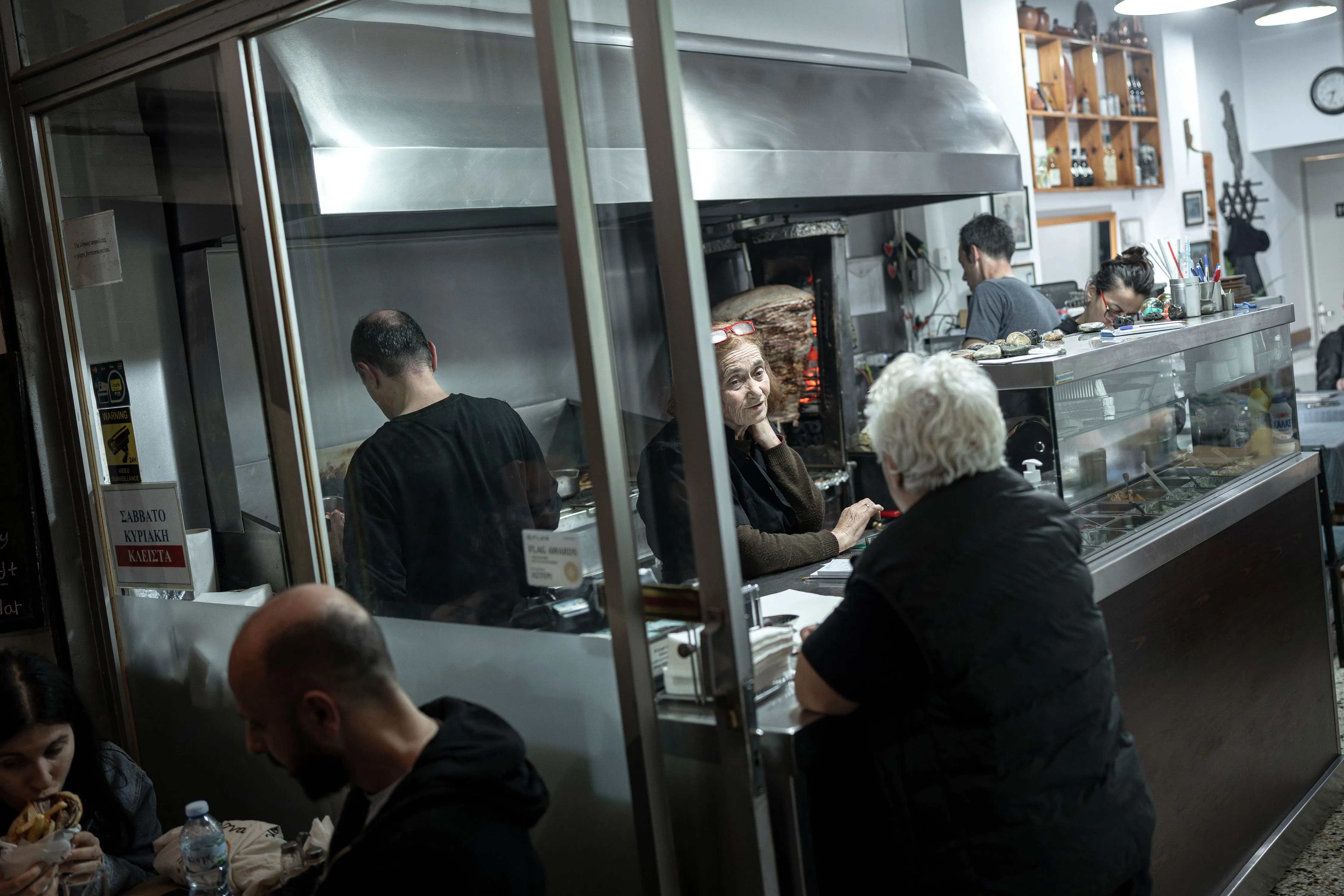 Οι παραγγελίες έρχονται βροχή. Κάποιοι έρχονται στο κατάστημα για να παραγγείλουν και τους ενημερώνουν ότι η αναμονή για γύρο είναι μια ώρα.