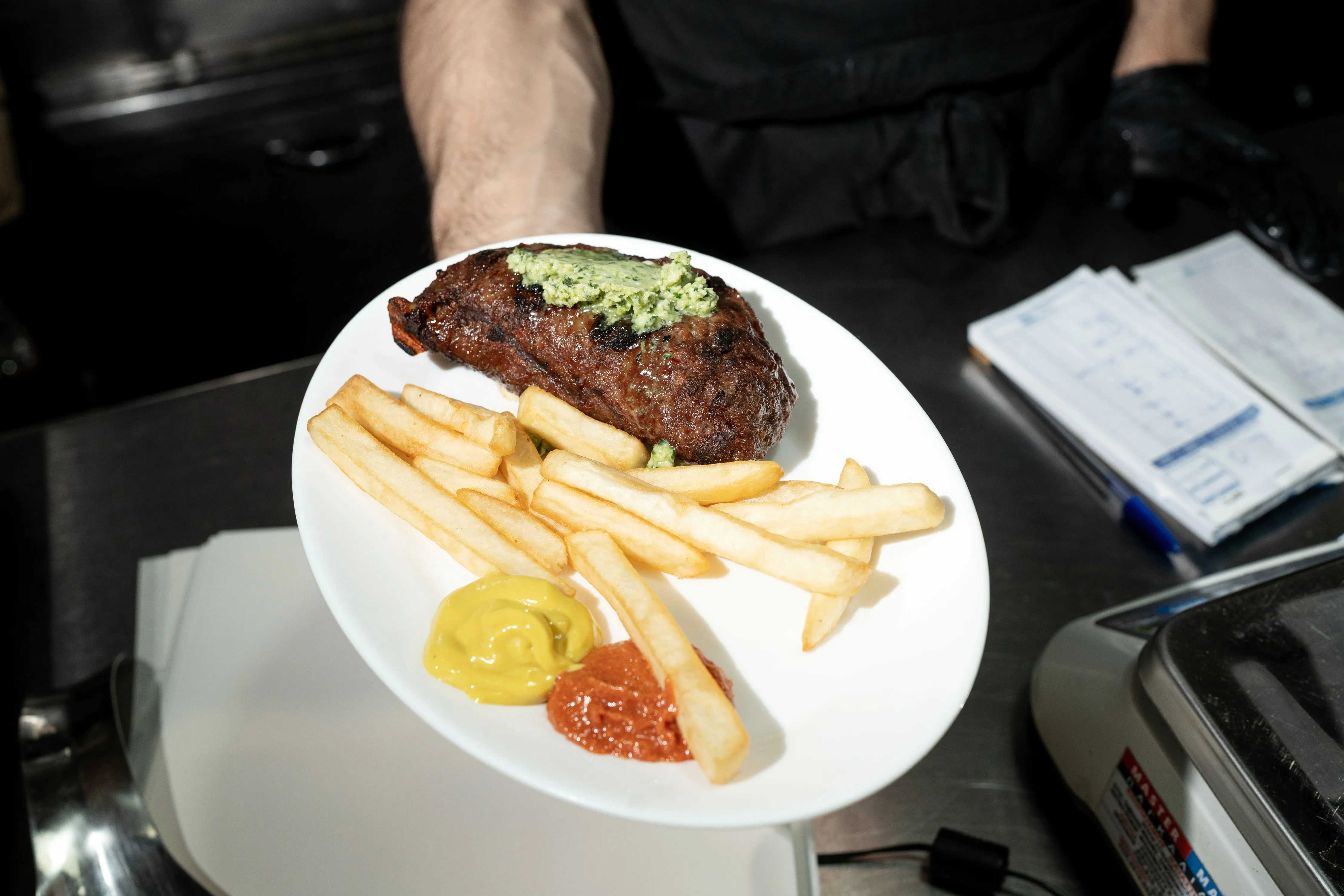 Νωπός γύρος και μελιτζάνα στα κάρβουνα, πίτα πατημένη στη φριτέζα και ροκφόρ για άλειμμα. Ναβαρχίδα του καταστήματος όμως είναι το γεμιστό μπιφτέκι.