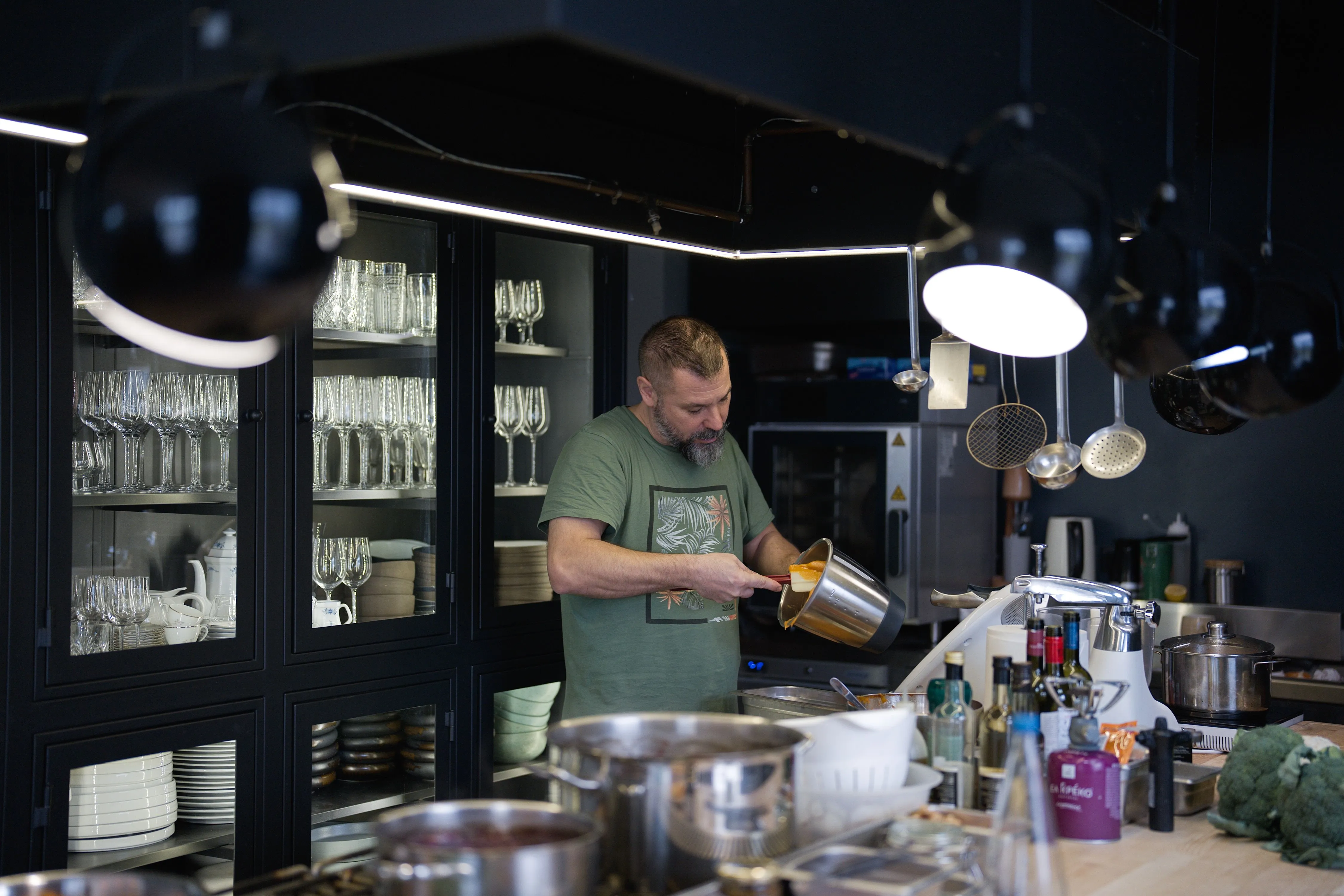 Ο Ανδρέας, σεφ του σπιτιού, έχει ξεκινήσει ήδη τις προετοιμασίες στην κουζίνα. Βράζει κολοκύθες, μπρόκολο και παντζάρι. «Θεωρώ ότι το πιο πολύτιμο πράγμα που λείπει στον άνθρωπο σήμερα είναι ο χρόνος. Δε θα γίνεις ποτέ πλούσιος από αυτή τη δουλειά – έχει ταβάνι και το έζησα. Δεν πήγαινε άλλο».