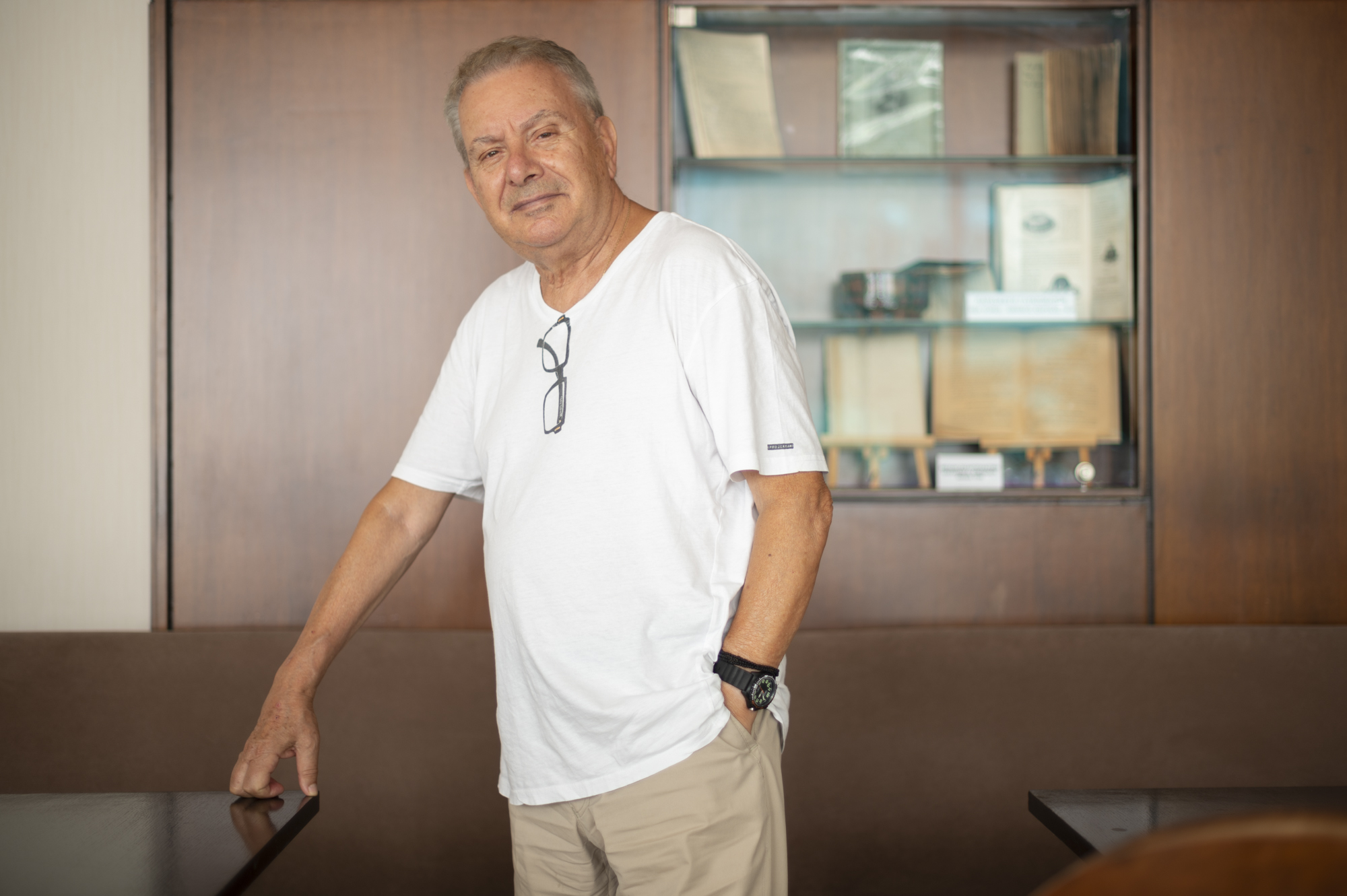 "Είμαι πάρα πολύ ευτυχής που πέρασα από αυτό το περίφημο τραπέζι του Χατζιδάκι. Είχα την άνεση να κάθομαι μαζί τους κάθε μεσημέρι εκεί που μαζεύονταν και τρώγανε, στον Φλόκα και στο GB Corner. Ήταν κάτι παραπάνω από σχολείο, τόσα χρόνια, από το ’71 μέχρι τη δεκαετία του ’90 που πέθαναν ο Χατζιδάκις και ο Γκάτσος." ΦΩΤΟΓΡΑΦΙΑ: ΦΡΑΝΤΖΕΣΚΑ ΓΙΑΪΤΖΟΓΛΟΥ-WATKINSON