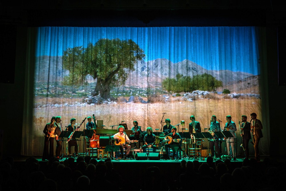 Μας “ανακάλυψαν” εκείνοι. Το 2018 λάβαμε ένα μήνυμα και μας προσέγγισαν για να κάνουμε κάποια συνεργασία και εμφανίσεις μαζί. Μας είχαν ψάξει πολύ, ήξεραν το Xylouris Ensemble τον πατέρα μου τον Ψαραντώνη. Απαντήσαμε “ναι” ότι θέλαμε όντως να συνεργαστούμε και το ίδιο καλοκαίρι του 2018 ήρθε ο μαέστρος τους εδώ στην Κρήτη και έμεινε μαζί μας 10 ημέρες. Ανταλλάξαμε ιδέες, ηχογραφήσαμε μαζί κάποια πράγματα που τα πήρε μαζί του στην Ολλανδία. Μας ακολούθησε όπου παίζαμε. Εκδηλώσεις, συναυλίες, πανηγύρια και είδε την κοινωνία μας, πώς λειτουργούμε, το γλέντι μας στην επαρχία. Όλες τις ώρες μαζί.