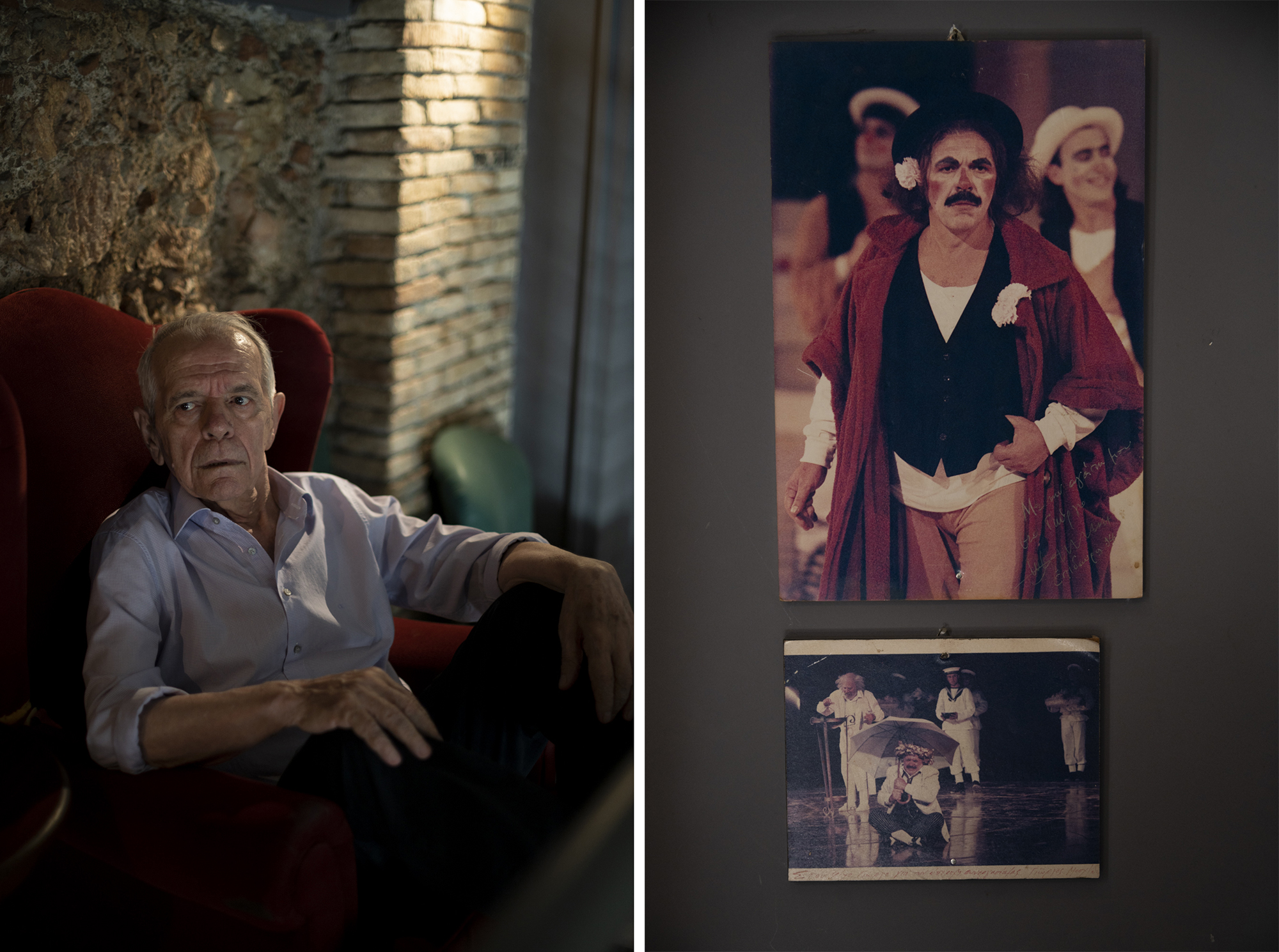 Ναι, έψαχνα να βρω ένα στίγμα καλό, που να έχει κάτι. Ευτυχώς με βοήθησε το Εθνικό. Ώσπου έφυγα από εκεί και γύρισα ένα σίριαλ στο MEGA, «Το σόι μας» λεγόταν, για δύο χρόνια. Έτσι μπόρεσα και έφτιαξα το θέατρο και το σπίτι μου. Τότε έπεφταν λεφτά στα σίριαλ – και γενικά. ΠΑΣΟΚ και πάσης Ελλάδος, που λένε. Δουλεύαμε πολύ και πληρωνόμασταν καλά. Έτσι πήρα θάρρος και έφτιαξα το θέατρο. Σε αυτό το χώρο που βλέπεις είχε τοίχους γεμάτους ζωγραφιές και σχέδια. Έπρεπε όμως να τα καταστρέψω όλα. Είμαι καταστροφέας λοιπόν και κατεδαφιστής κατά κάποιο τρόπο αυτού του διατηρητέου κτιρίου. Δε γινόταν όμως αλλιώς. Ευτυχώς είχα πολλούς μαθητές από την αρχή.