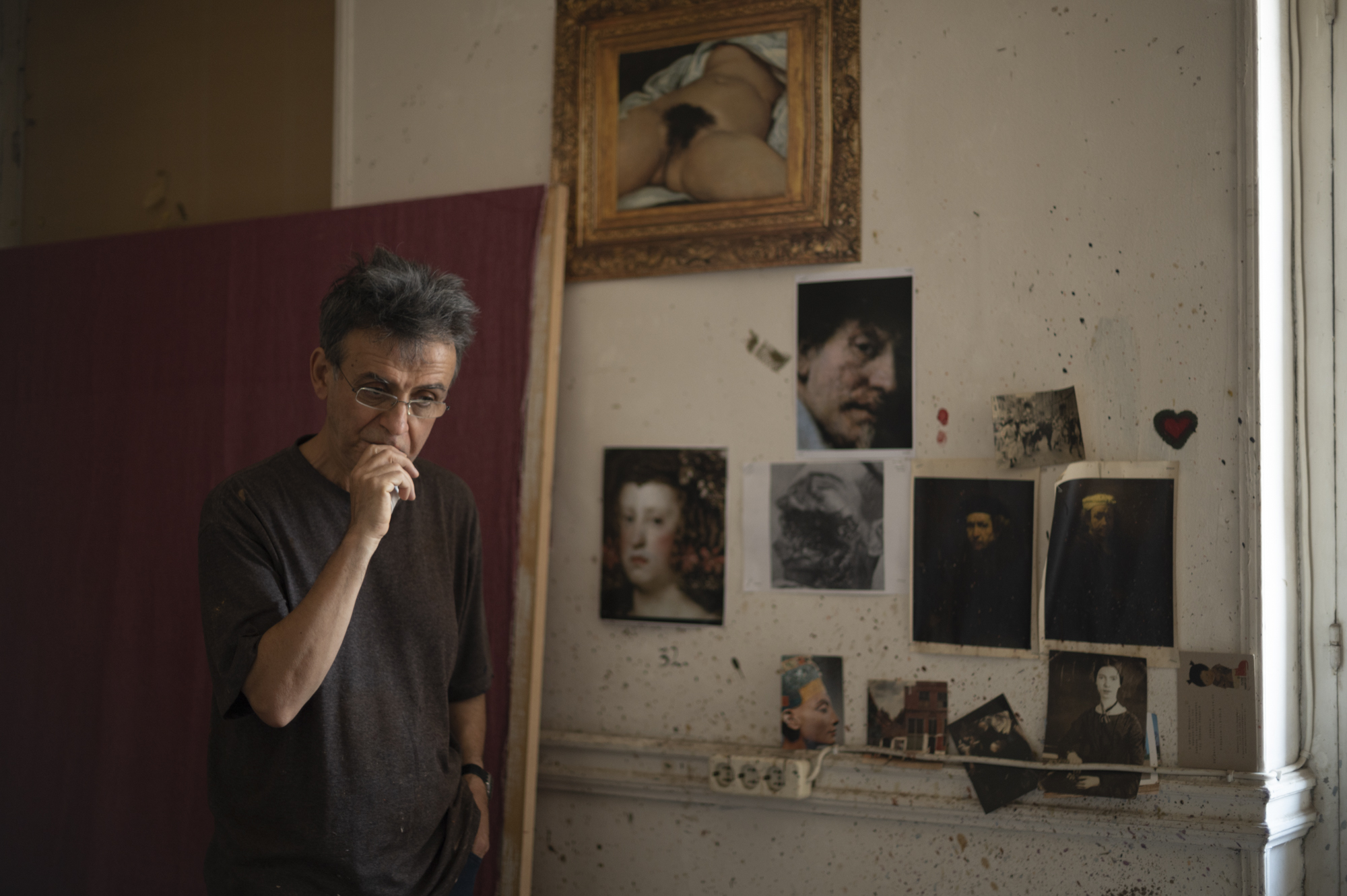 Κάνουμε, λοιπόν, αυτή την κουβέντα, με αφορμή τη μεγάλη αναδρομική του έκθεση με τίτλο «Η ευγένεια του απέριττου», αυτό το καλοκαίρι, στο διάσημο «μητροπολιτικό» Μουσείο Γουλανδρή στην Χώρα της Άνδρου (με 60 πίνακες και σχέδια, που ανιχνεύουν την καλλιτεχνική του εξέλιξη μέσα από τρεις ενότητες: τη σχέση του ζωγράφου με το ατελιέ του, τις επιδράσεις που δέχτηκε από τους δασκάλους του και την αδιάκοπη εξερεύνηση του σώματος, φτιαγμένου «από σάρκα και οστά»). Αλλά καθώς κουβεντιάζουμε online, σε οθόνες, μου κάνει τρομερή εντύπωση ότι διατηρεί την ικανότητα που έχει και στη ζωγραφική του. Γιατί αντιμετωπίζει την οθόνη ως πίνακα και πολύ γρήγορα, μου κάνει το «πορτρέτο» περιγράφοντας με απόλυτη ακρίβεια το περιβάλλον μου, ακόμα και την τεχνοτροπία στις κορνίζες πίσω από την πλάτη μου ή το σχήμα της καρέκλας που κάθομαι. Πώς μπόρεσε να τα προσέξει όλα αυτά μέσα από μία οθόνη; Πότε πρόλαβε να τα δει;
