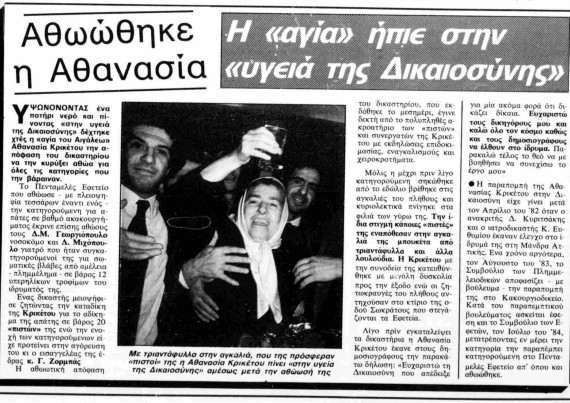Η Ελευθεροτυπία για την αθώωση της Αθανασίας, το 1986