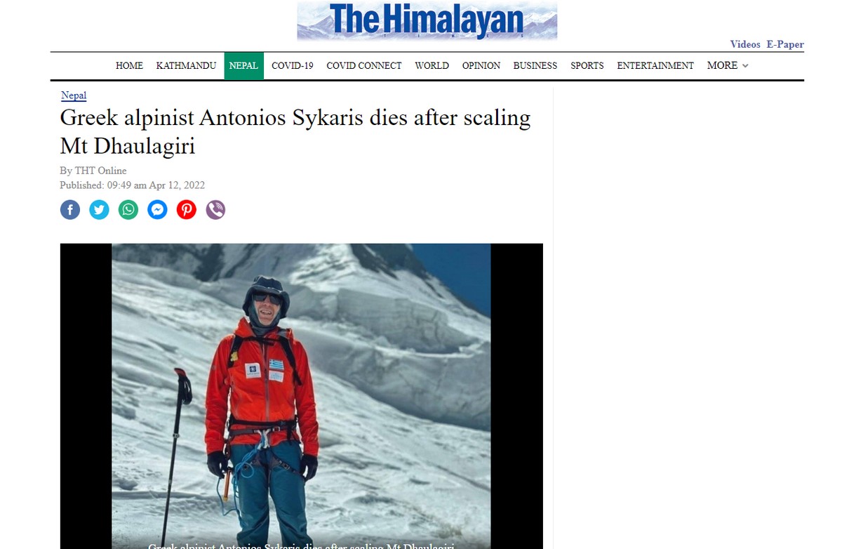 Ο αλπινιστής Αντώνης Συκάρης βρέθηκε στο Νεπάλ, στο πλαίσιο αποστολής που διαχειρίζεται η Seven Summit Treks Η εταιρία αυτή διοργανώνει, ας πούμε, εκδρομές για έμπειρους ορειβάτες και διάφορους στόχους (κορυφές στα 6, στα 7 και στα 8 χιλιάδες μέτρα). Ο Αντώνης Συκάρης είχε κατακτήσει το Έβερεστ, τυ Lhotse και το Annapurna, με αυτόν τον τρόπο.