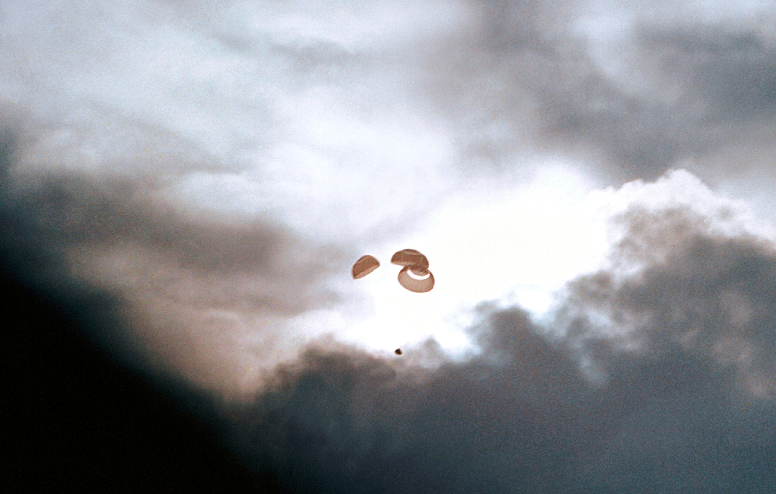 Το βάρους έξι τόνων “Odyssey” ταξίδευε προς τη Γη με ταχύτητα 40.000 χλμ την ώρα. Στην πρώτη επαφή με την ατμόσφαιρα, το σκάφος επιβράδυνε και άρχισε να υπερθερμαίνεται, με μοναδική προστασία τη θερμική ασπίδα. Οι θερμοκρασίες που αναπτύχθηκαν, έφτασαν τους 2.700 βαθμούς Κελσίου. Εν τω μεταξύ, μετά την πάροδο των τεσσάρων λεπτών, οι κλήσεις από το Χιούστον προς το “Odyssey” ήταν συνεχείς. Πέρασαν τα πέντε λεπτά χωρίς καμία απάντηση. Αν οι πυρίμαχες πλάκες δεν είχαν αντέξει, το σκάφος, μαζί και οι τρεις αστροναύτες, θα είχαν γίνει παρανάλωμα του πυρός.