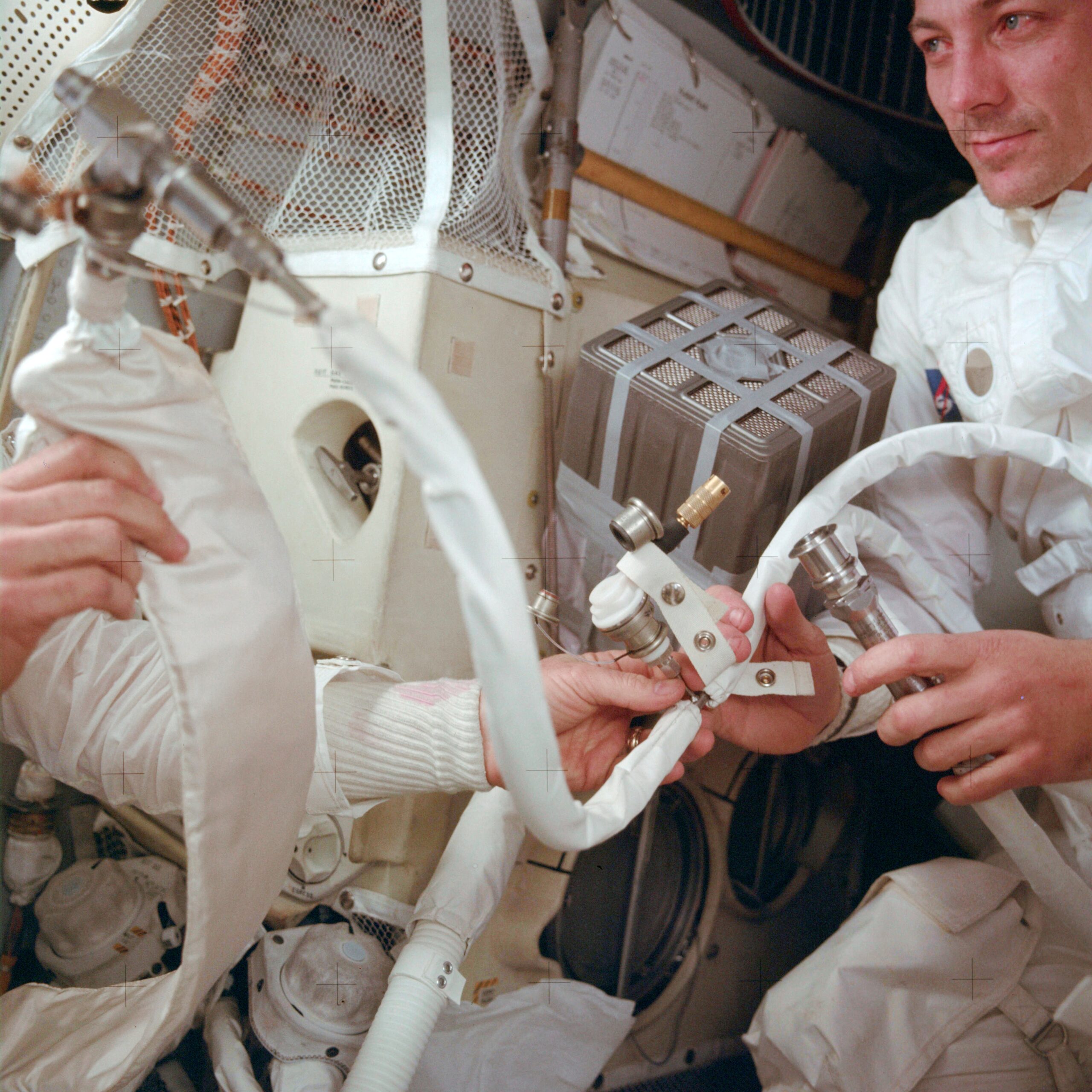 Ο Ντικ Σλέιτον, υπεύθυνος για τον ορισμό των αστροναυτών στις διάφορες αποστολές της NASA, είχε επιλέξει, εκτός του Λόβελ, τον Φρεντ Χέιζ (πιλότο στη σεληνάκατο) και τον Κεν Μάτινγκλι (πιλότο στο διαστημόπλοιο). Μια εβδομάδα πριν την προγραμματισμένη εκτόξευση, ο Τσαρλς Ντιούκ, εφεδρικός πιλότος της σεληνακάτου, κόλλησε ερυθρά από έναν φίλο του γιου του. Αυτό εξέθεσε στον ιό και τα δυο πληρώματα, τόσο το βασικό όσο και το εφεδρικό, που εκπαιδεύονταν μαζί. Ο μοναδικός από τους πέντε συνολικά αστροναύτες της αποστολής που δεν είχε κάνει το απαραίτητο εμβόλιο, ήταν ο Μάτινγκλι.