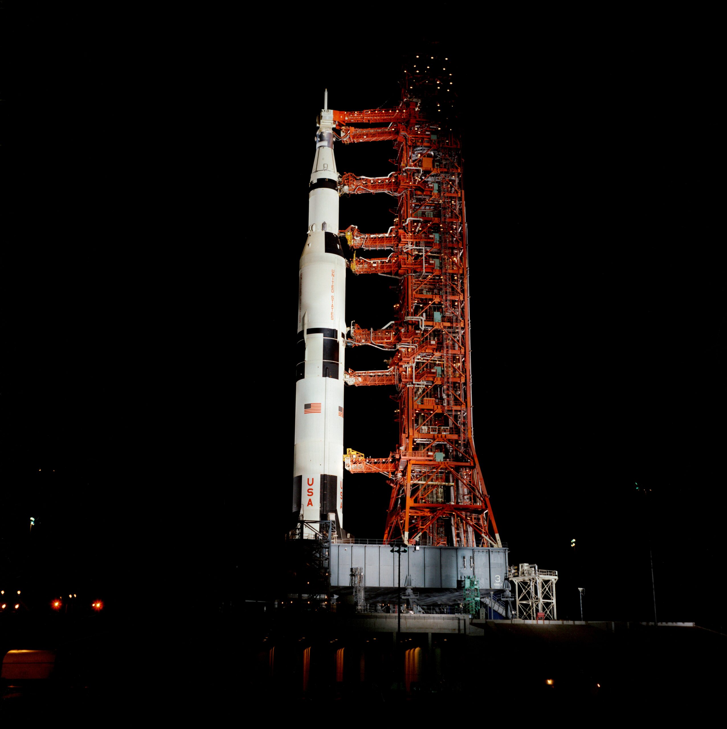 Μέρος του διαστημοπλοίου θεωρείτο και το LES (Launch Escape System), το σύστημα διαφυγής εκτόξευσης, που ήταν προγραμματισμένο να αποκολλήσει τον θαλαμίσκο διακυβέρνησης από τον πύραυλο, σε περίπτωση προβλήματος κατά την εκτόξευση, καθώς και το Spacecraft-LM Adapter (SLA-16), που ήταν ο αποθηκευτικός χώρος της σεληνακάτου κατά τις πρώτες ώρες της πτήσης. Ο θάλαμος εξυπηρέτησης, ο θαλαμίσκος διακυβέρνησης και η σεληνάκατος, παραδόθηκαν στο Διαστημικό Κέντρο Κένεντι τον Ιούνιο του 1969, ενώ τα τρία στάδια του Saturn V, τον Ιούνιο και τον Ιούλιο της ίδιας χρονιάς.
