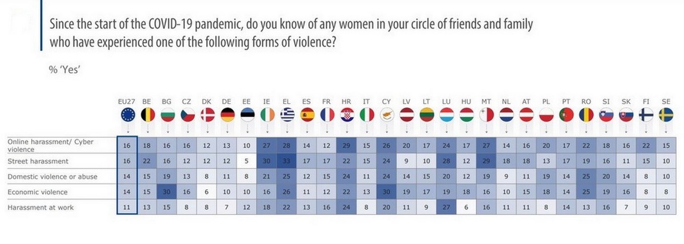 Από τις 25 Ιανουαρίου μέχρι τις 3 Φεβρουαρίου, ένα αντιπροσωπευτικό δείγμα γυναικών 15 ετών και άνω μεταξύ των 27 κρατών-μελών της Ευρωπαϊκής Ένωσης (26.741 γυναίκες συνολικά) κλήθηκαν να δώσουν το δικό τους βιωματικό στίγμα για τις ανοιχτές έμφυλες πληγές οι οποίες διογκώθηκαν στην περίοδο της έγκλειστης καθημερινότητας, υπό τη σκιά της πατριαρχίας που απλώθηκε πάνω από την ισότητα, τη σωματική και ψυχική ακεραιότητα, την ορατότητα και μία σειρά πολλών ακόμα καίριων ζητημάτων.