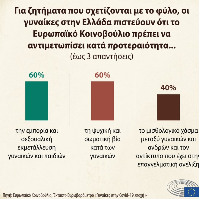 Η Παγκόσμια Ημέρα της Γυναίκας, αφορμή. Η κλιμάκωση του φαινομένου που μαστίζει τις ευρωπαϊκές -και όχι μόνο- κοινωνίες και εντάθηκε στη διετία του κορονοϊού, αιτία. Κάπως έτσι, το Ευρωπαϊκό Κοινοβούλιο έλαβε μία ιστορική απόφαση, υλοποιώντας και παρουσιάζοντας για πρώτη φορά ένα Ευρωβαρόμετρο στη βάση των γυναικείων δικαιωμάτων, με αποκλειστική συμμετοχή -σχεδόν 27.000- γυναικών και περιεχόμενο ερωτήσεων τις επιπτώσεις της πανδημίας σε βασικούς άξονες της ζωής τους.