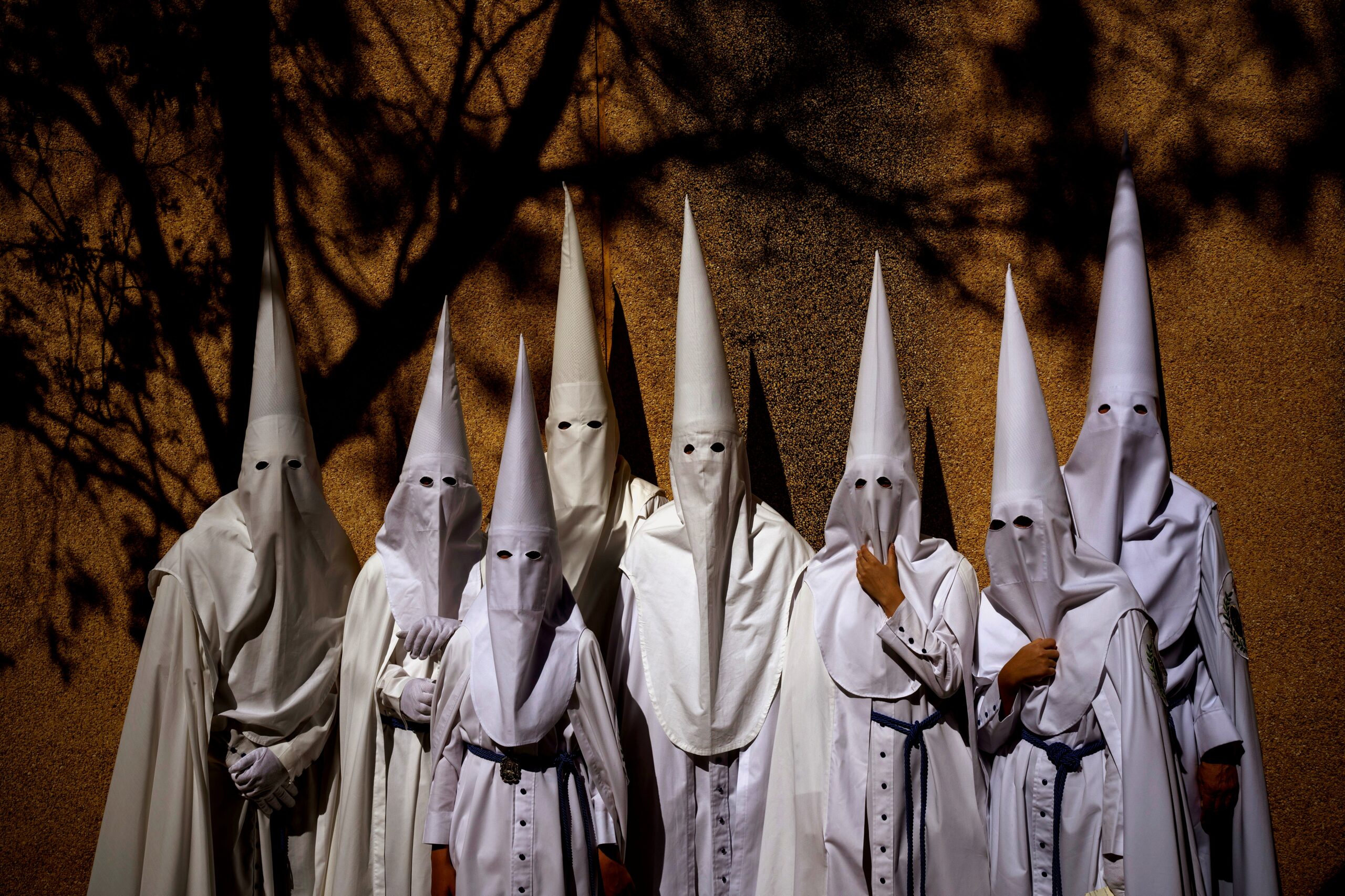 Καταρχάς υπάρχουν οι Cofradías ή Hermandades, “αδελφότητες” δηλαδή που αποτελούνται από πιστούς, οι οποίοι έχουν αφιερωθεί είτε στο Χριστό, είτε στην Παρθένο Μαρία, είτε σε κάποιον άγιο. Υπάρχουν τριών ειδών τέτοιες ομάδες, για να μην σας κουράζω άσκοπα όμως, θα ασχοληθούμε μόνο με τις ομάδες αυτές που σχετίζονται με τη Μεγάλη Εβδομάδα και ονομάζονται penitenciales, έχουν δηλαδή σαν σκοπό τους να κερδίσουν τη μετάνοια για τις αμαρτίες τους.