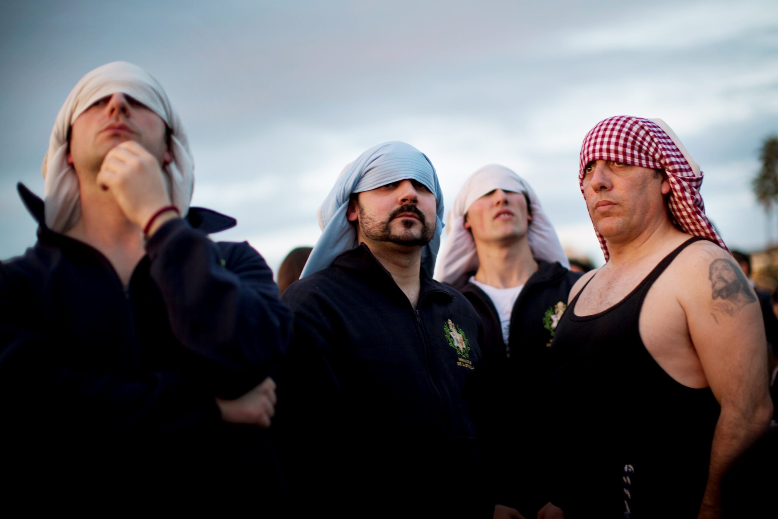 2. Οι Nazarenos: Έτσι αποκαλούνται οι αδελφοί που συνοδεύουν το paso στη διαδρομή της λιτανείας. Συναντώνται κυρίως στην Ανδαλουσία και ντύνονται σύμφωνα με τον κώδικα της αδελφότητας, στην οποία ανήκουν. Είναι οι περίεργοι με τους χιτώνες, τις κουκούλες και τα μυτερά καπέλα (είτε πιερότο σας θυμίζουν, είτε κου κλουξ κλαν, οι συνειρμοί μάλλον δεν είναι τυχαίοι…) που κρατάνε κεριά και σε μερικές περιπτώσεις σέρνουν σταυρούς. Όταν συμβαίνει αυτό το τελευταίο, τότε πρόκειται για την επόμενη κατηγορία, τους “πενιτέντες”.