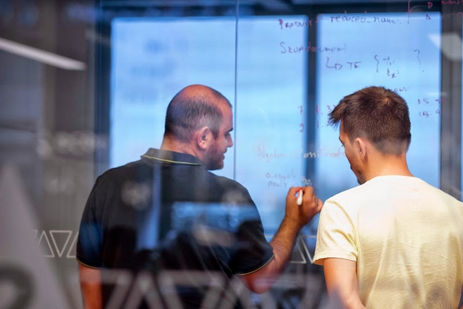 Σε αυτά τα καινούργια γραφεία στην Νέα Ιωνία, απέναντι από το πάλαι ποτέ στρατηγείο του Αθήνα 2004 τους συναντήσαμε. Ο θόρυβος από τις εργασίες προδίδει μία ακόμη επέκταση. Στον ήδη ένα χρόνο που βρίσκονται εδώ έχουν γεμίσει τα 1.100 τ.μ. και πάνε για άλλα 500 τ.μ.. Οι δύο Γιώργηδες και ο Βασίλης, οι συνιδρυτές που ασκούν την διοίκηση στην εταιρεία δεν έχουν δικά τους γραφεία και είναι μοιρασμένοι στην ίδια μεγάλη αίθουσα που βρίσκονται και οι υπόλοιποι εργαζόμενοι.