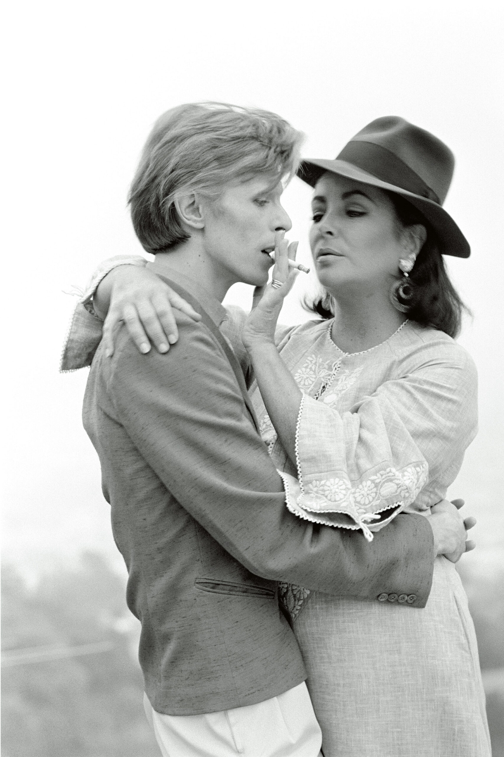 Ο David Bowie γνωρίζει την Elizabeth Taylor για πρώτη φορά στο σπίτι του George Cukors στο Beverly Hills, 1974. Terry O'Neill / Iconic Images/ χρήση μόνο για την έκθεση STARS