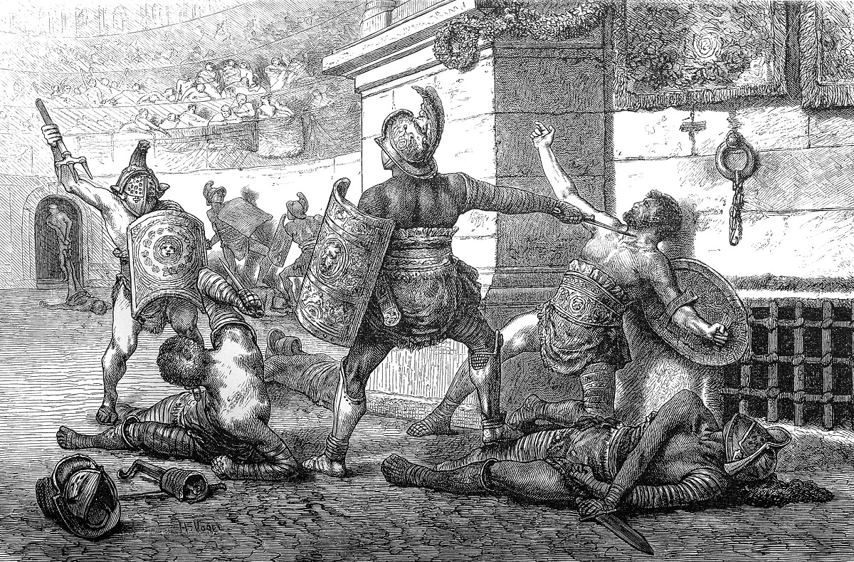 Ο αυτοκράτορας Δομιτιανός διεξήγαγε αγώνες μονομάχων τη νύχτα υπό το φως της δάδας, φέρνοντας μερικές φορές τις γυναίκες ενάντια σε νάνους καθώς και μεταξύ τους, σύμφωνα με τον Κάσσιο Ντίο και τον Σουητώνιο, έναν άλλο μεγάλο Ρωμαίο ιστορικό.
