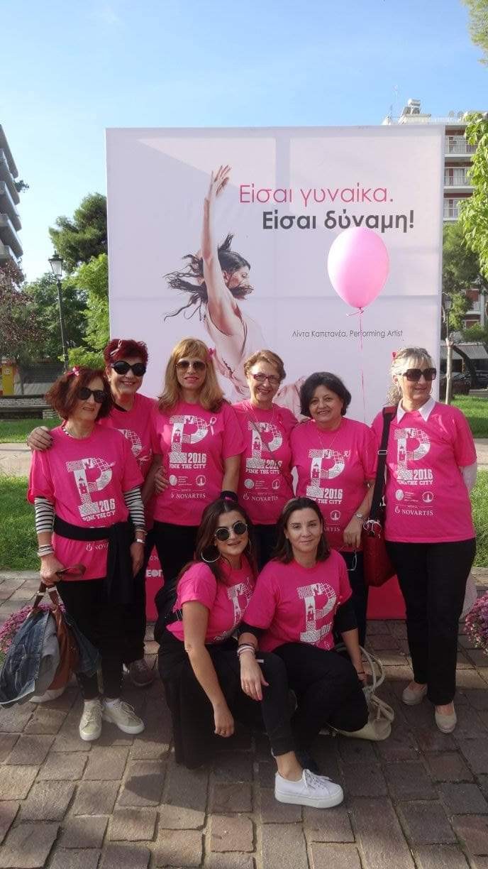 Πάκυ Καραλή με μέλη του συλλόγου στη δράση ''Pink the city'' που διοργανώνει κάθε χρόνο ο σύλλογος στην Πάτρα