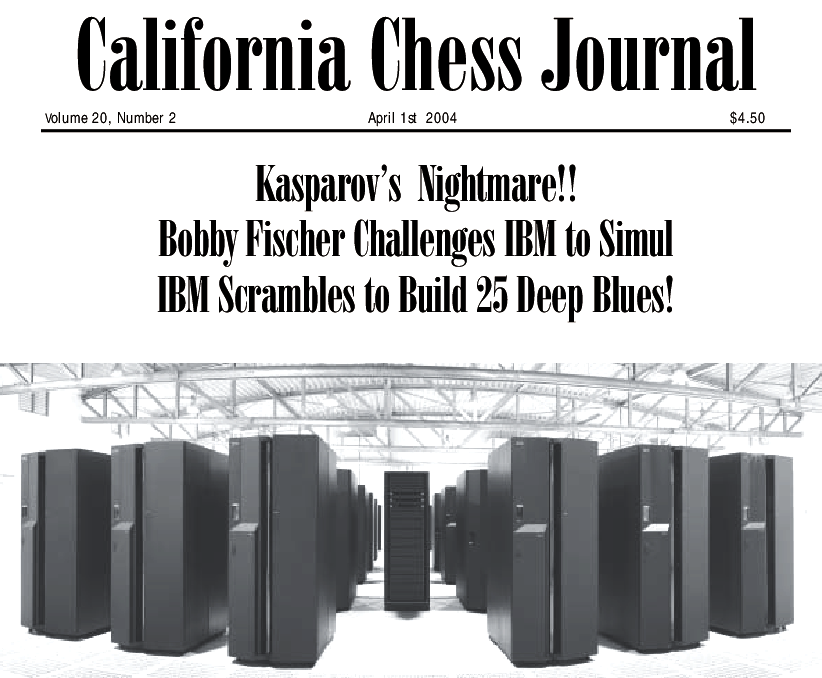 “Ο Μπόμπι Φίσερ προκάλεσε την ΙΒΜ όχι απλά σε έναν αγώνα με τον Deep Blue, αλλά σε παρτίδα σιμουλτανέ (παρτίδα όπου ένας σκακιστής παίζει ταυτόχρονα με πολλούς αντιπάλους) με 25 (!) Deep Blues. Ο αγώνας θα πραγματοποιηθεί σε έναν μήνα από τώρα, αφού η ΙΒΜ αποδέχθηκε τους 5 όρους που είχε θέσει ο πρώην παγκόσμιος πρωταθλητής:
