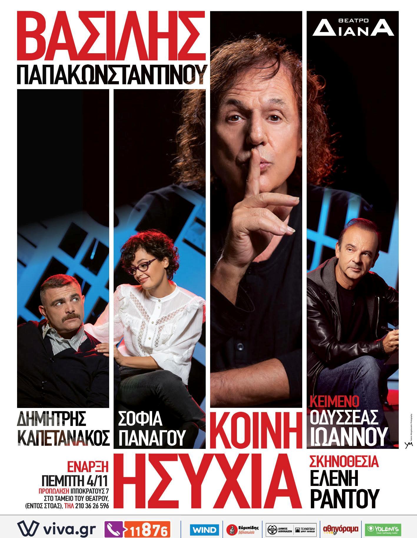 Επιτρέψτε μου, πριν προχωρήσω στο κείμενο, να ξεκαθαρίσω το εξής: αυτό που θα διαβάσετε δεν είναι κριτική μιας παράστασης, δεν έχω ούτε τις γνώσεις, ούτε τη φιλοδοξία να γράψω κάτι τέτοιο. Πρόκειται απλά για μια καταγραφή όσων ένιωσα κατά τη διάρκεια της “Κοινής Ησυχίας”, μαζί με μερικές σκέψεις των πρωταγωνιστών, δηλαδή του Οδυσσέα Ιωάννου, του Βασίλη Παπακωνσταντίνου, της Σοφίας Πανάγου και του Δημήτρη Καπετανάκου. Τους οποίους συνάντησα την περασμένη Πέμπτη, λίγο πριν ξεκινήσει να ξετυλίγεται μπροστά μου μια μικρή μουσικοθεατρική “αποκάλυψη”.