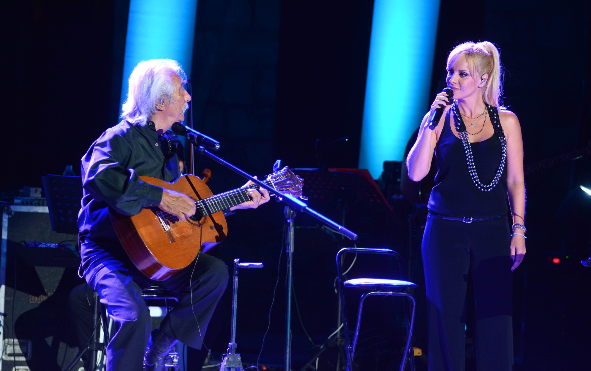 Είναι τόσες πολλές! Οι καλλιτέχνες που συνεργάστηκα ήταν όπως και εγώ “όργανα” που υπηρετήσαμε και υπηρετούμε το τραγούδι. Η Μαρινέλλα, η Χάρις Αλεξίου, η Πέγκυ Ζήνα, η Πίτσα Παπαδοπούλου. Μιλάμε όλοι αυτοί οι καλλιτέχνες είναι τεράστιοι. Και βέβαια ο Χατζιδάκις, ο Θεοδωράκης, αλλά και ο Μαρκόπουλος τον οποίο θεωρώ από τους πιο σπουδαίους μουσουργούς. Τους τραγούδησα όλους και ήταν οι άνθρωποι που μου έδωσαν την ευκαιρία, μέσα από εκείνους, να μπορώ να λέω και τα δικά μου τραγούδια. Να περνάω τα μηνύματά του. Πρώτα γνώρισα τον Μίμη Πλέσσα, μετά τον Λεοντή, τον Σπανό πολύ αργότερα. Τους τραγούδησα όλους. Αυτός που ήταν πολύ κοντά μου και μου στάθηκε στις δυσκολίες μου ήταν ο Γιώργος Κατσαρός. Αυτός δεν είναι μόνο συνθέτης, είναι και άνθρωπος που έχει βοήθει πολλούς καλλιτέχνες! Αλλά με στήριξαν πολύ και ο Οικονομίδης, ο Χατζηχρήστος. Δεν θέλω να ξεχάσω κάποιον.
