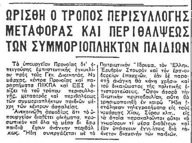 Εξετάζοντας τον Τύπο της εποχής μέσα από το Εμπρός του Αλκ. Καλαποθάκη και την κεντρώα Ελευθερία του Πάνου Κόκκα διαπιστώνουμε πως οι αναφορές στις οργανωμένες μεταφορές παιδιών στις παιδουπόλεις ήταν αραιές και φιλοξενούνταν στις τελευταίες σελίδες των εφημερίδων. Αντιθέτως, συχνές είναι οι αναφορές στο “παιδομάζωμα των συμμοριτών” ή αλλιώς στις “απαγωγές”, όπως αποκαλούσε το κυβερνητικό στρατόπεδο τις αποστολές παιδιών στις Λαϊκές Δημοκρατίες από τον Δημοκρατικό Στρατό. Ενδεικτικό είναι το πρωτοσέλιδο του Εμπρός στις 29 Δεκεμβρίου 1949 με τίτλο από ραδιοφωνική ομιλία της Φρειδερίκης “Στην Ελλάδα πενθούμε για την μοίρα 28.000 αθώων παιδιών”.