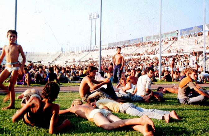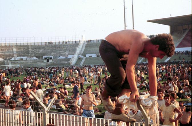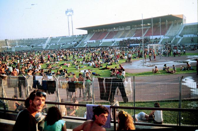 BARI - 1991 agosto 1991 LO SBARCO DELLA MOTONAVE VLORA CARICA DI CLANDESTINI ALBANESI - Interno dello Stadio Delle Vittorie - foto Arcieri - Quaranta