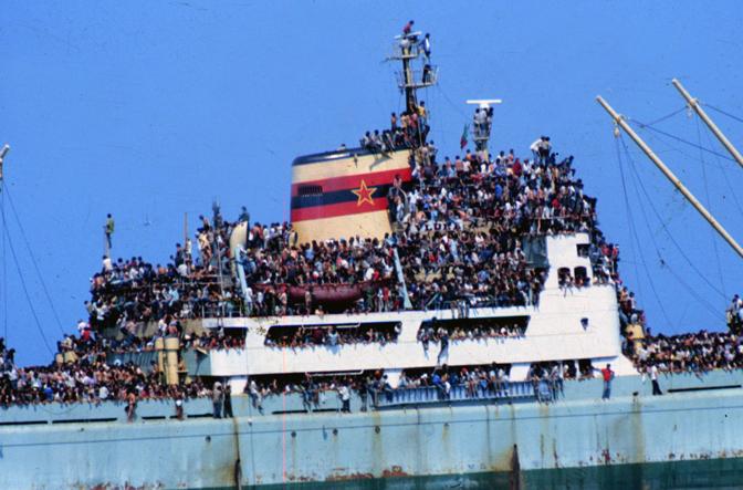Σκαρφάλωναν από τα σκοινιά, από την μπουκαπόρτα, από όπου μπορούσαν και όταν πια και ο τελευταίος αποφασισμένος είχε ανέβει επάνω ανάγκασαν τον καπετάνιο να τους πάει στην Ιταλία. Όσοι τυχεροί είχαν ραδιόφωνα και τηλεοράσεις στην εποχή του Χότζα μάθαιναν από αυτά ιταλικά και πλέον πίστευαν ότι ήρθε η στιγμή να τα αξιοποιήσουν. Ούτε οι σφαίρες που έριχναν στον αέρα οι Αλβανοί αστυνόμοι που τους καλούσαν να κατέβουν από το πλοίο δεν τους σταματούσαν. Το πλοίο έλυσε και διέσχιζε την Αδριατική Θάλασσα από τα ανατολικά προς τα δυτικά.