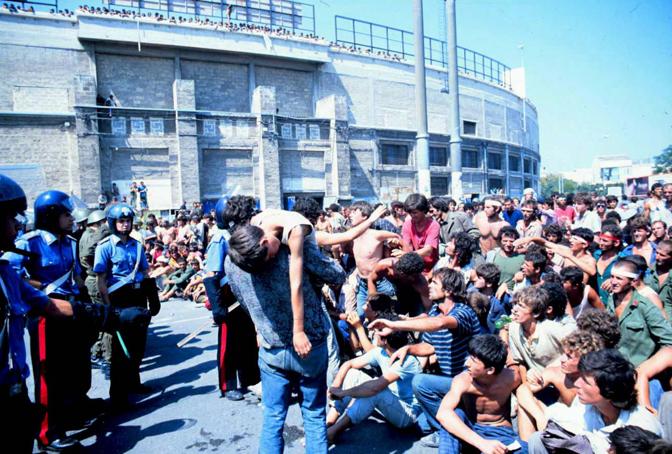BARI - 1991 agosto 1991 LO SBARCO DELLA MOTONAVE VLORA CARICA DI CLANDESTINI ALBANESI - esterno dello stadio delle vittorie - foto Arcieri - Quaranta