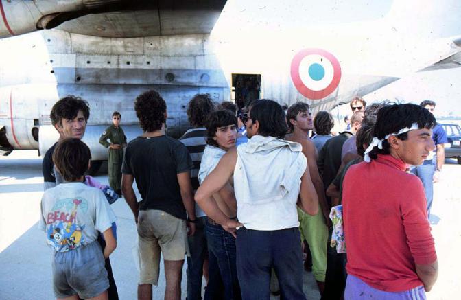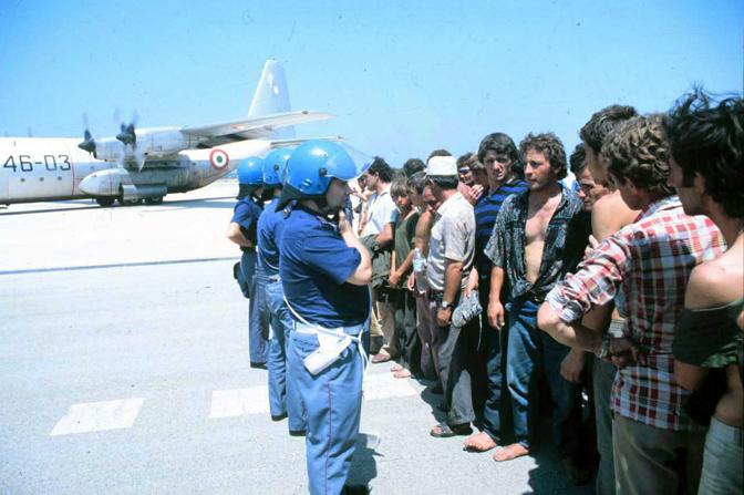 BARI - 1991 agosto 1991 LO SBARCO DELLA MOTONAVE VLORA CARICA DI CLANDESTINI ALBANESI - Aeroporto rimpatrio - foto Arcieri - Quaranta