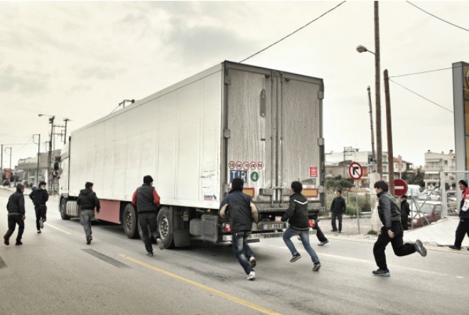 Κάπως έτσι βρέθηκε στην Αθήνα και στο εγκαταλελειμμένο εργοστάσιο της Columbia που έχουν βρει προσωρινή στέγη παράνομοι μετανάστες, στην Πάτρα ακολουθώντας τους στην προσπάθεια να ανέβουν σε ψυγεία και φορτηγά ώστε να καταφέρουν να μπουν σε ένα πλοίο που θα τους οδηγήσει τουλάχιστον ως την Ιταλία και στην Κόρινθο.