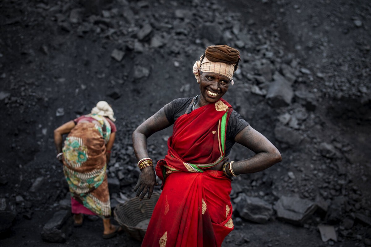 Μια Ινδή ανθρακορύχος χαμογελά κατά τη διάρκεια του διαλείμματός της AP