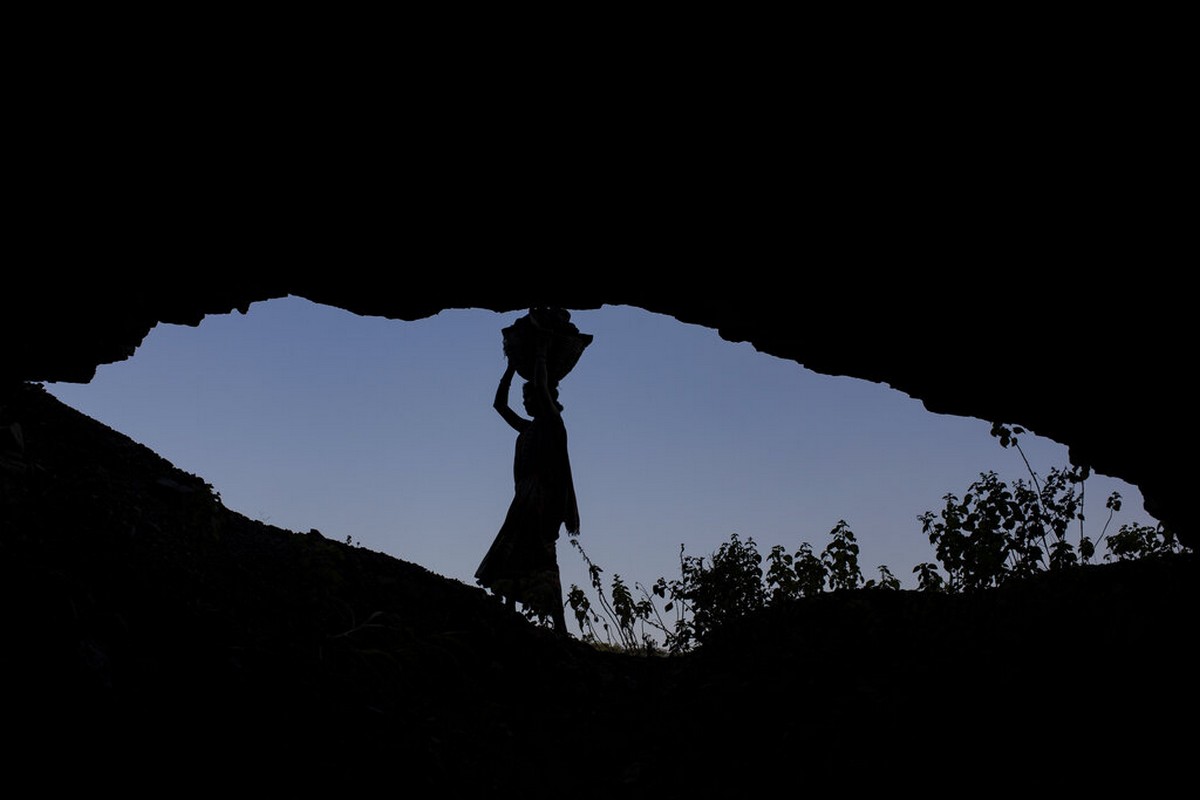 Ένας άντρας κουβαλά ένα καλάθι γεμάτο άνθρακα που εξόρυξε από ορυχείο στην Νταμπά AP