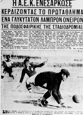 Η κιτρινόμαυρη ομάδα είχε αναδειχθεί Κυπελλούχος Ελλάδος το 1932, όταν στον τελικό νικούσε στη Λεωφόρο τον Άρη με 5-3. Ένα από τα πέντε γκολ της ΑΕΚ είχε πετύχει ο Κώστας Νεγρεπόντης, που βρισκόταν στο τελείωμα της καριέρας του (35 ετών). Θα έπαιζε ένα ακόμη χρόνο μπάλα και στη συνέχεια θα αναλάμβανε την τεχνική ηγεσία της ομάδας.