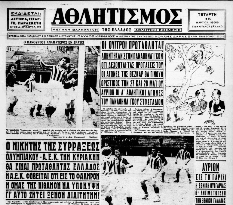 Η μάχη με τον Ολυμπιακό (που επίσης δεν ήταν πρωταθλητής Πειραιά, αφού τον τίτλο στο λιμάνι εκείνη την σεζόν τον πήρε ο Εθνικός) είχε ένταση και πολύ παρασκήνιο. Οι μεταξύ τους αγώνες συγκλόνιζαν τους φανατικούς φίλους και των δυο ομάδων, ενώ αν νομίζετε ότι το αίτημα για ξένους διαιτητές είναι τωρινό φαινόμενο απατάσθε! Η ΑΕΚ ζητούσε αλλοδαπούς ρέφερι για το ντέρμπι με τον Ολυμπιακό, πριν από 85 χρόνια! Όλα τριγύρω αλλάζουνε και όλα τα ίδια μένουν; Ε, ναι…